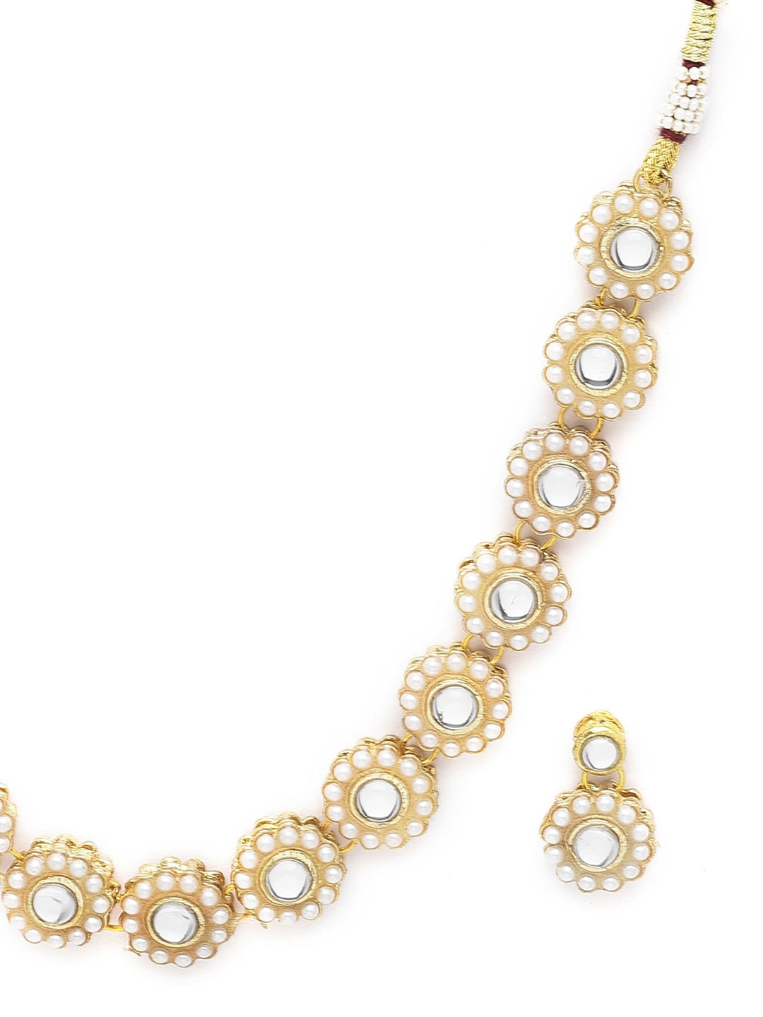 Gold-plated necklace, has white kundan-studded and beaded detail, and secured with a drawstring closure