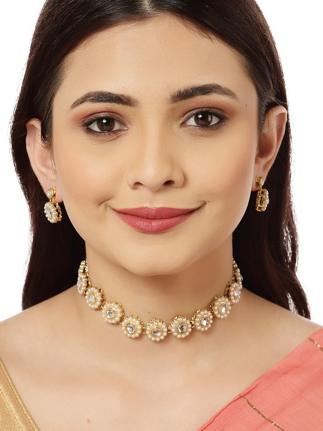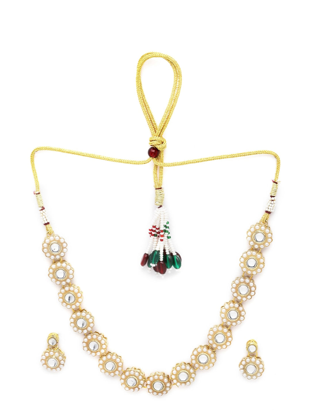 Gold-Plated White Kundan-Studded Beaded Jewellery Set
