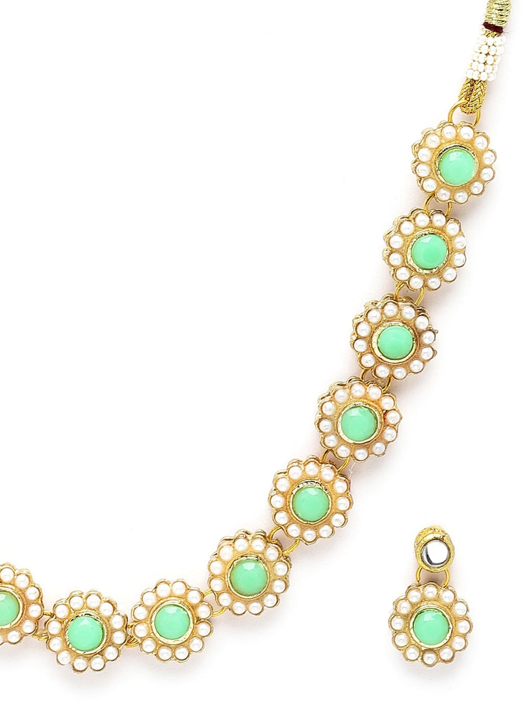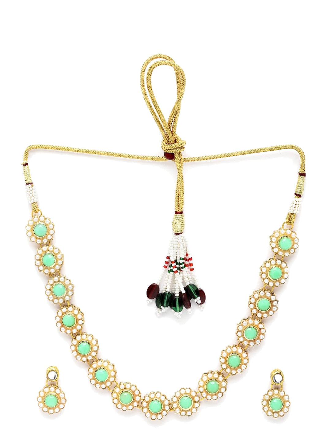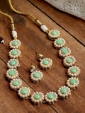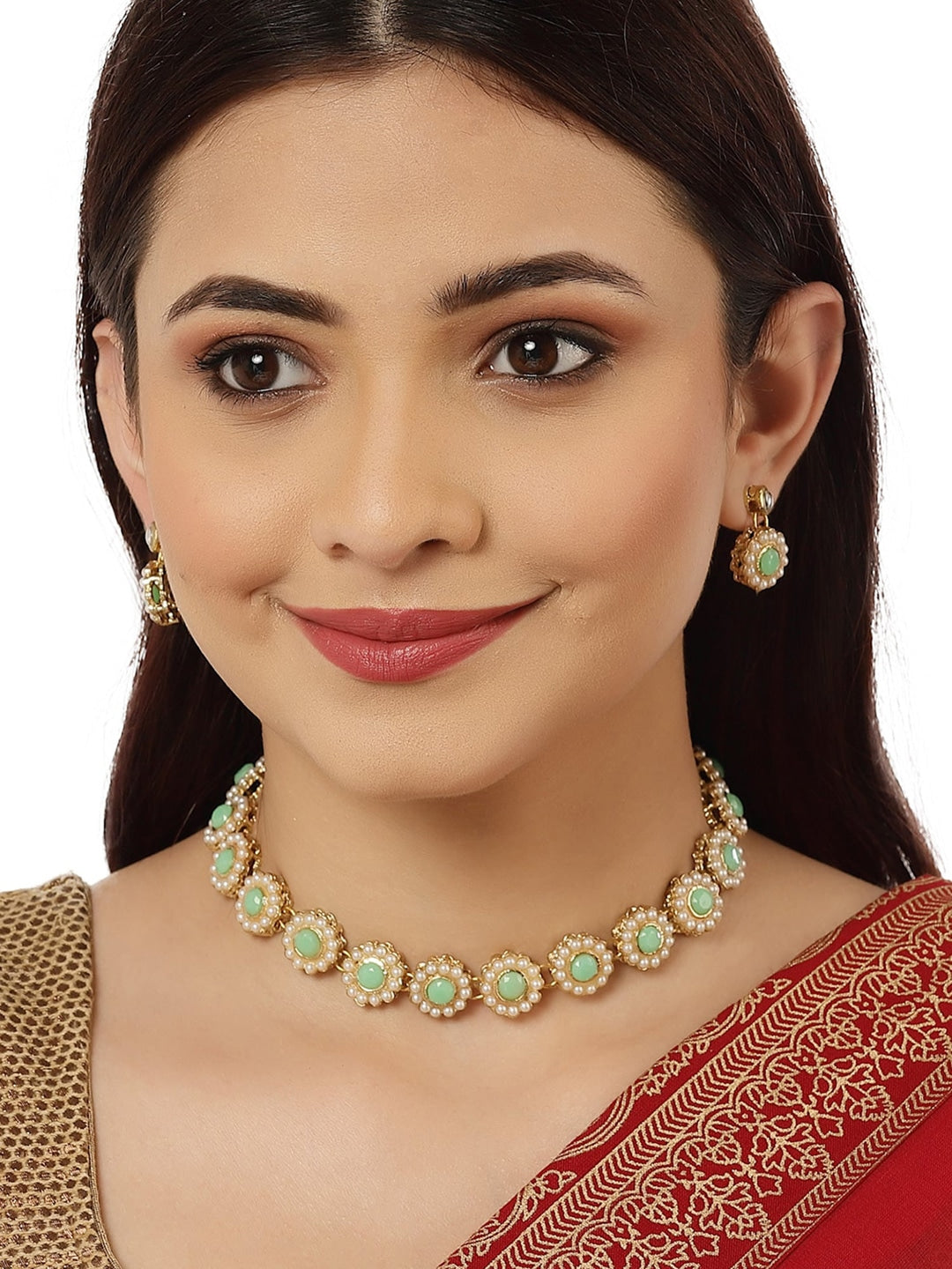 Lime Green gold-plated handcrafted choker necklace has Kundan studded details