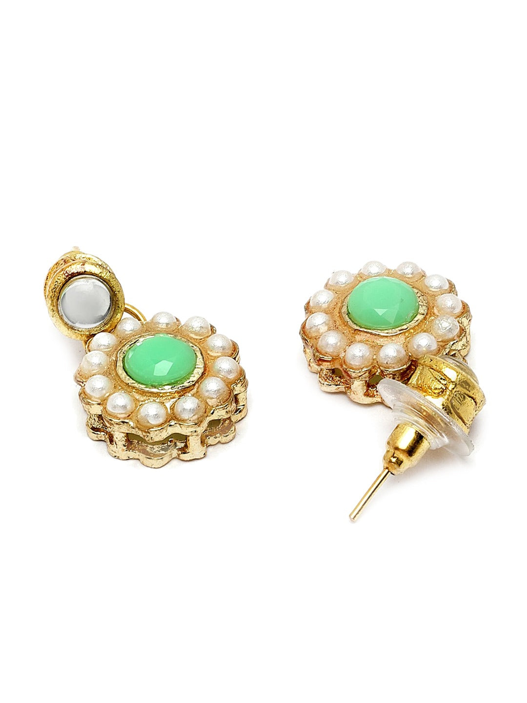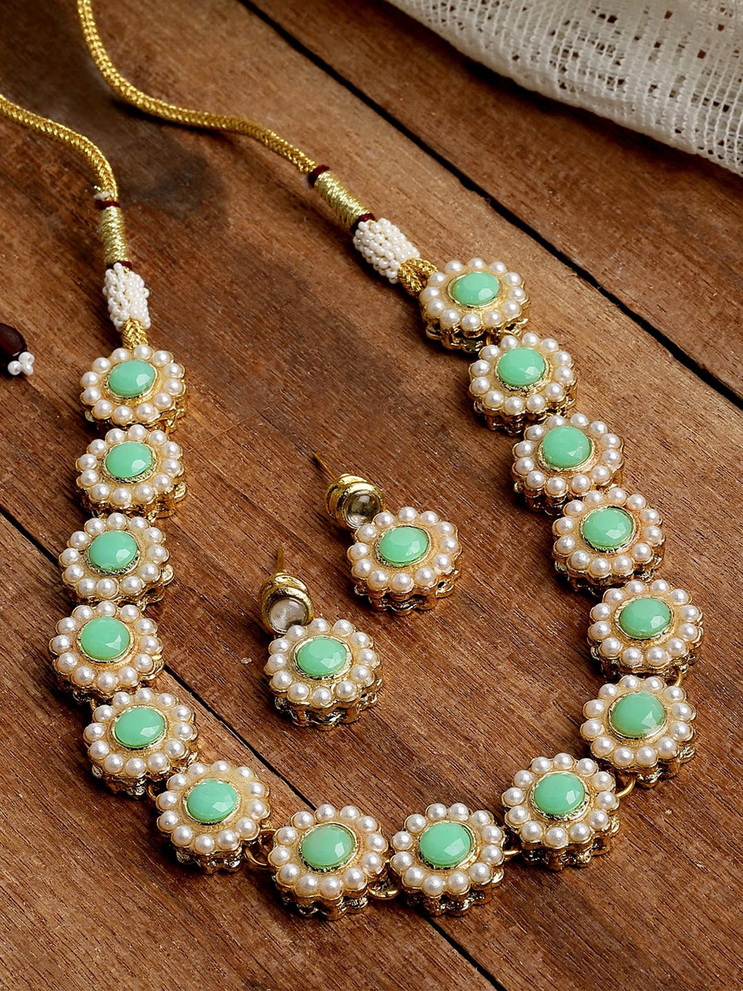 Women Lime Green Gold Plated Kundan Studded Jewellery Set