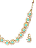 Gold-plated necklace, has white and blue kundan-studded and beaded detail, and secured with a drawstring closure