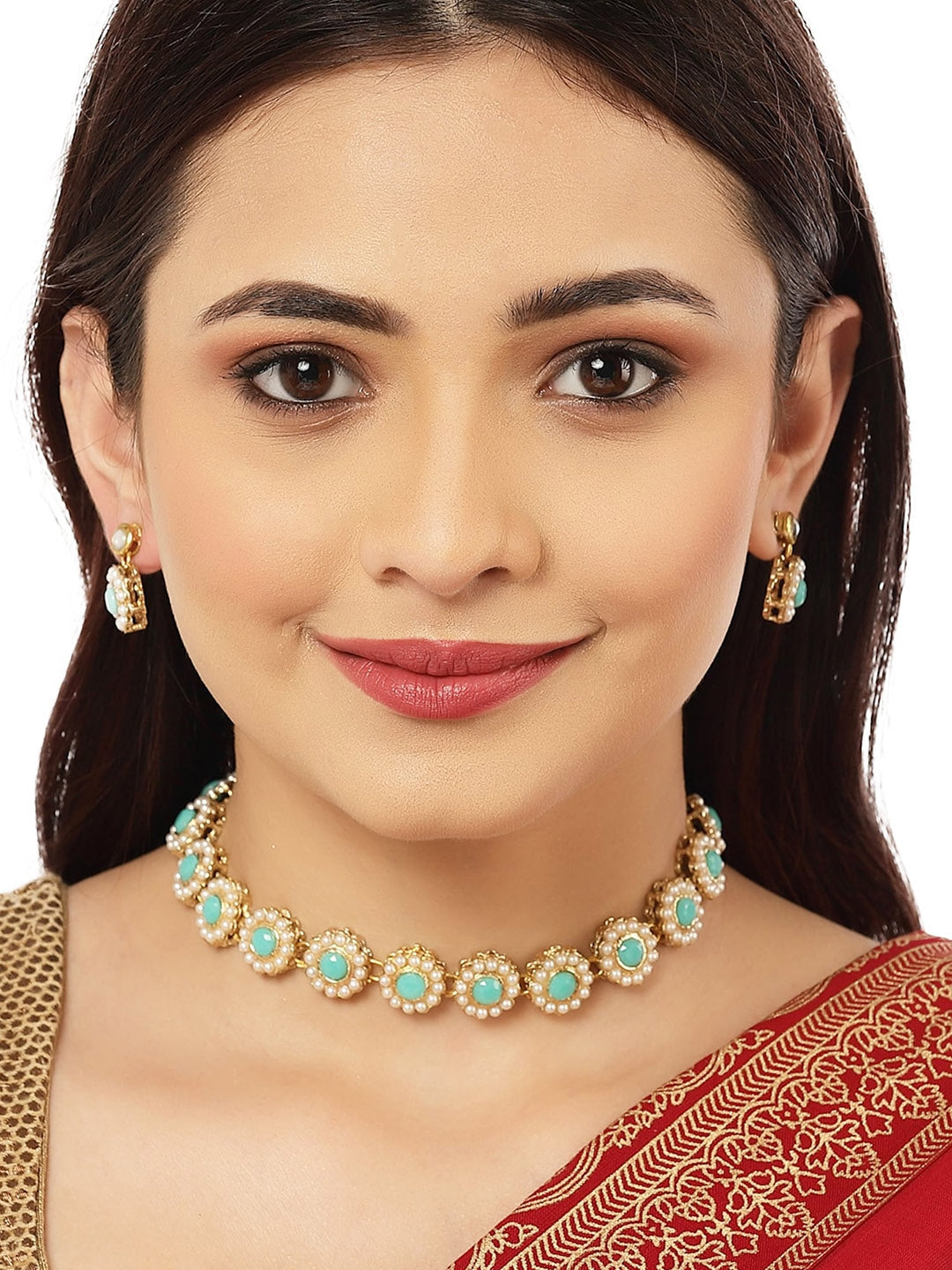 This jewelry set consists of a necklace and a pair of earrings