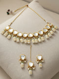 Gold-Plated White Kundan-Studded Beaded Jewellery Set
