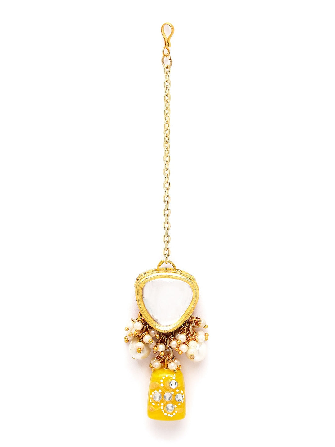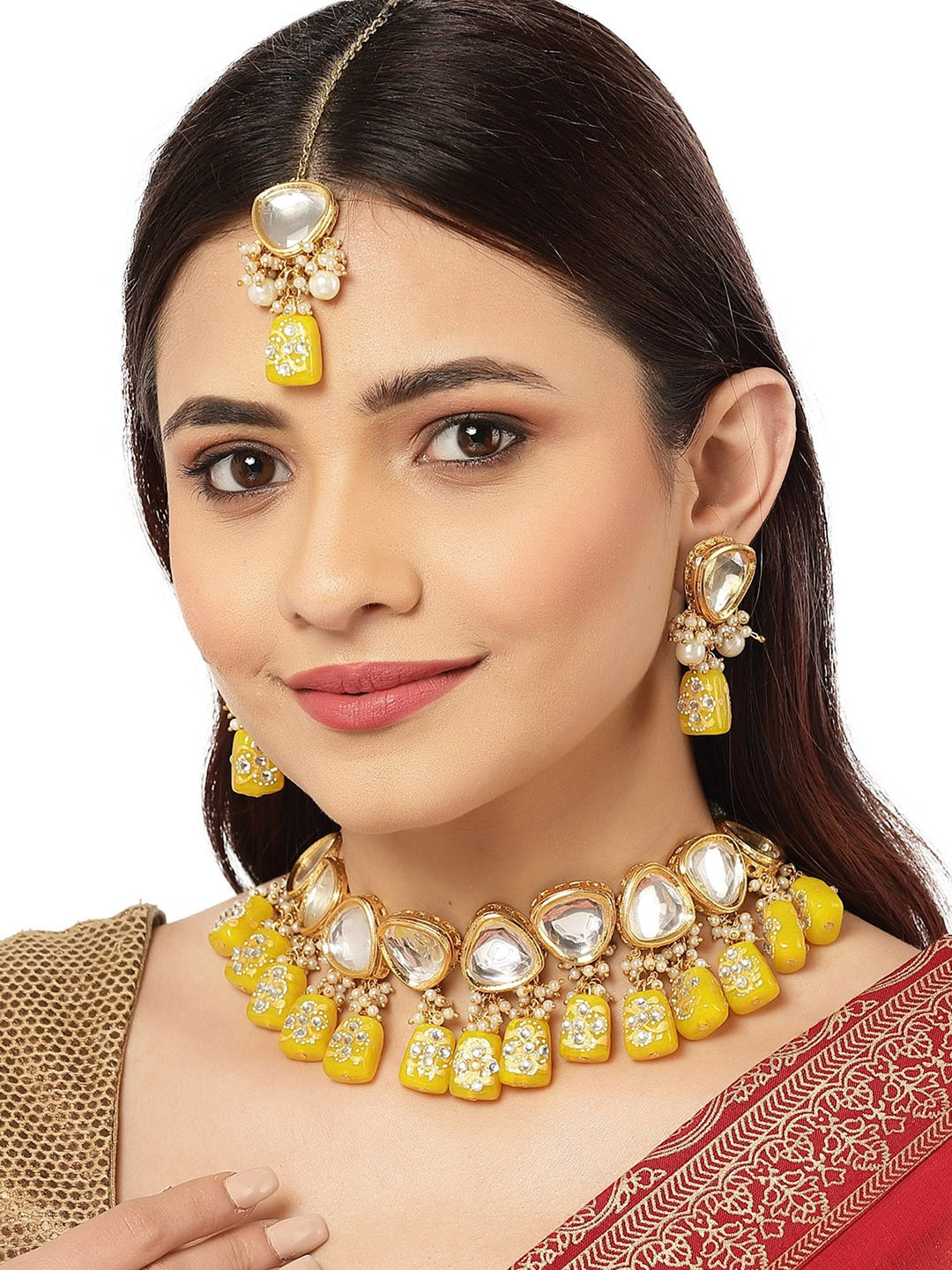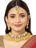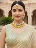 Gold-Plated Light Yellow Tumble And Polki Kundan Studded Jewellery Set