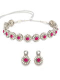 Karatcart Oxidised Silver Red Kundan and Pearl Choker Necklace Set