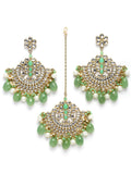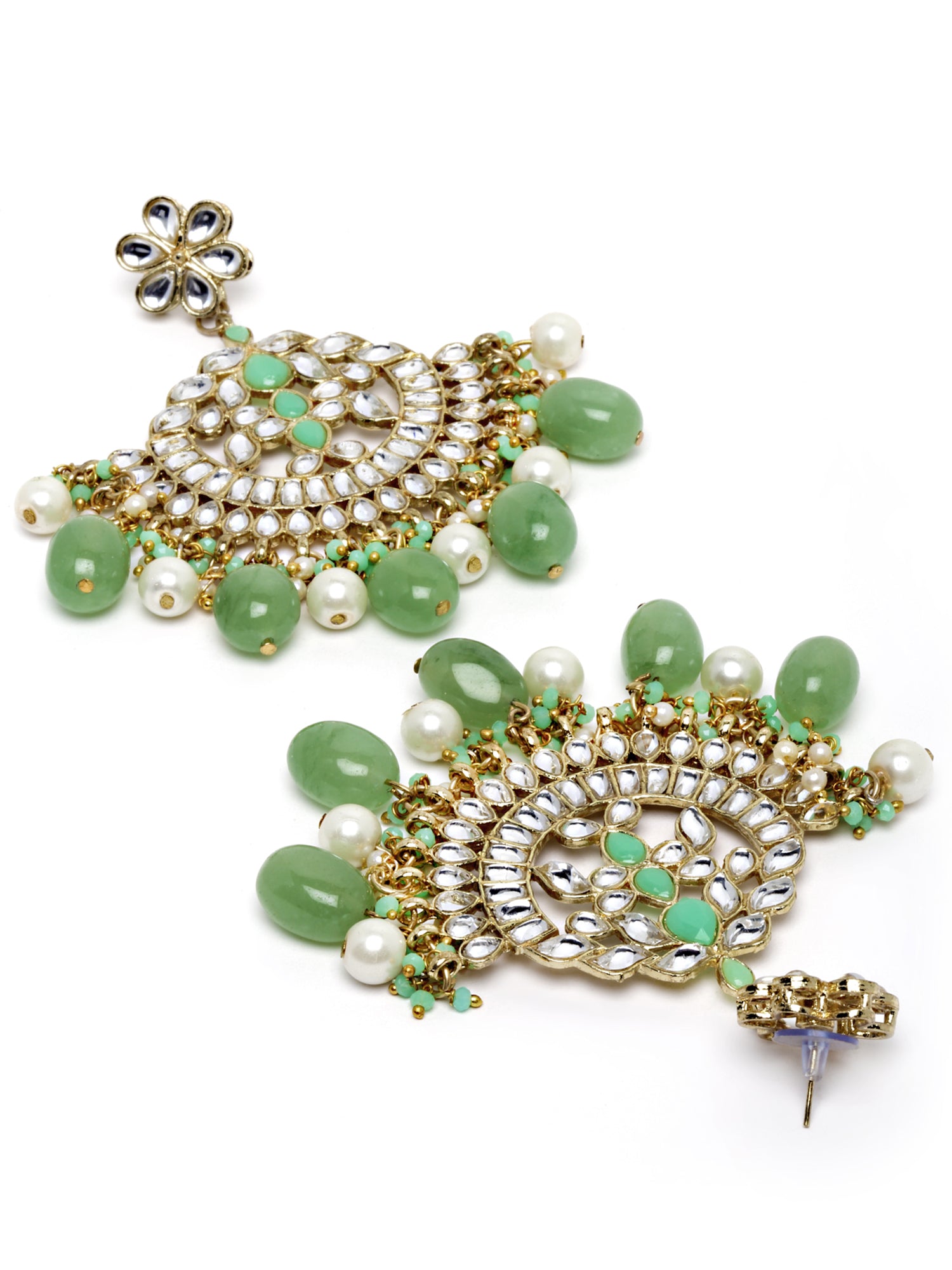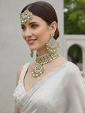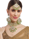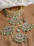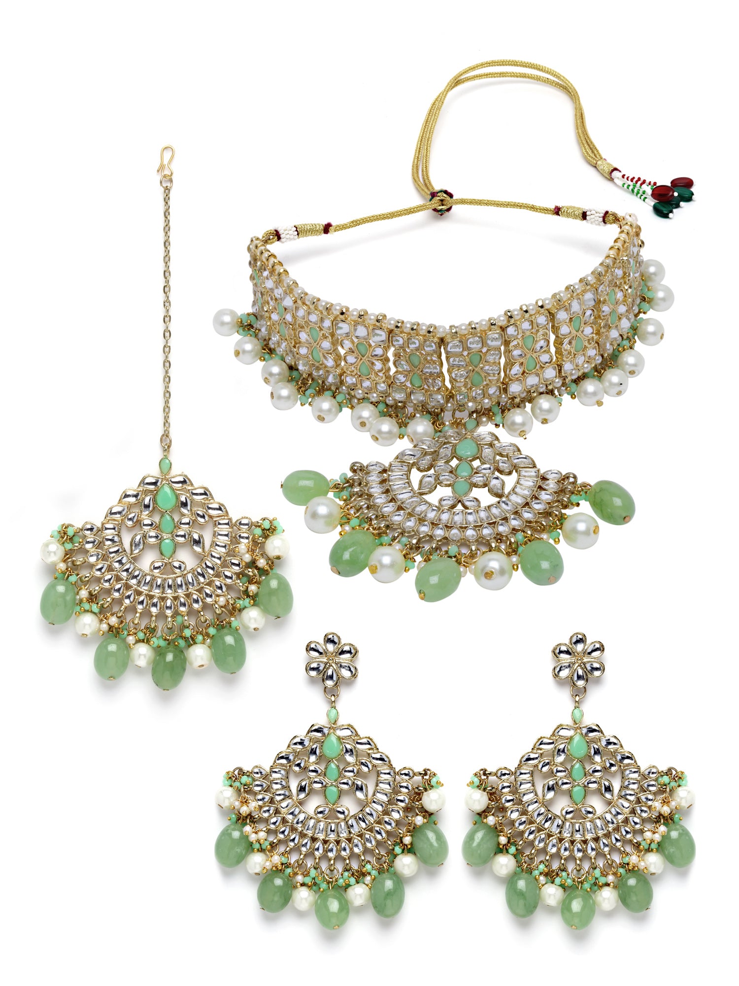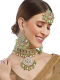 Karatcart Gold Plated Light Green Tumble and Pearl Studded Choker Necklace Set