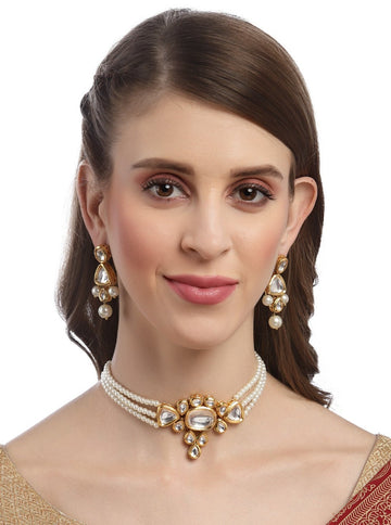 - Karatcart Gold Plated Pearl Beaded Polki Choker Necklace Set. It is made with high-quality Kundan Stones which makes them very skin-friendly. Perfect for Weddings, Parties, Festivals, and Traditional Occasions. Gracefully pair Saree, Kurti, or any Indo-western outfit to enhance your look. These are made from toxic-free materials which are Anti-Allergic and Safe for the skin.