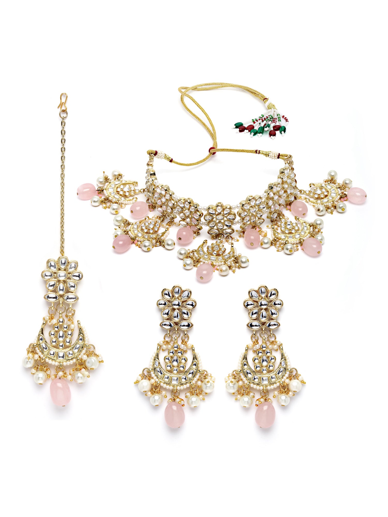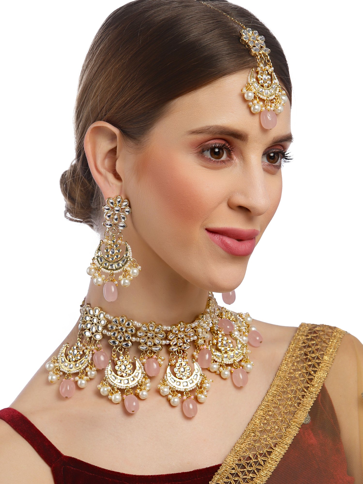 - Karatcart Gold Plated Pink Tumble and Pearl Choker Necklace Set. It is made with high-quality Kundan Stones which makes them very skin-friendly. Perfect for Weddings, Parties, Festivals, and Traditional Occasions. Gracefully pair Saree, Kurti, or any Indo-western outfit to enhance your look. These are made from toxic-free materials which are Anti-Allergic and Safe for the skin.