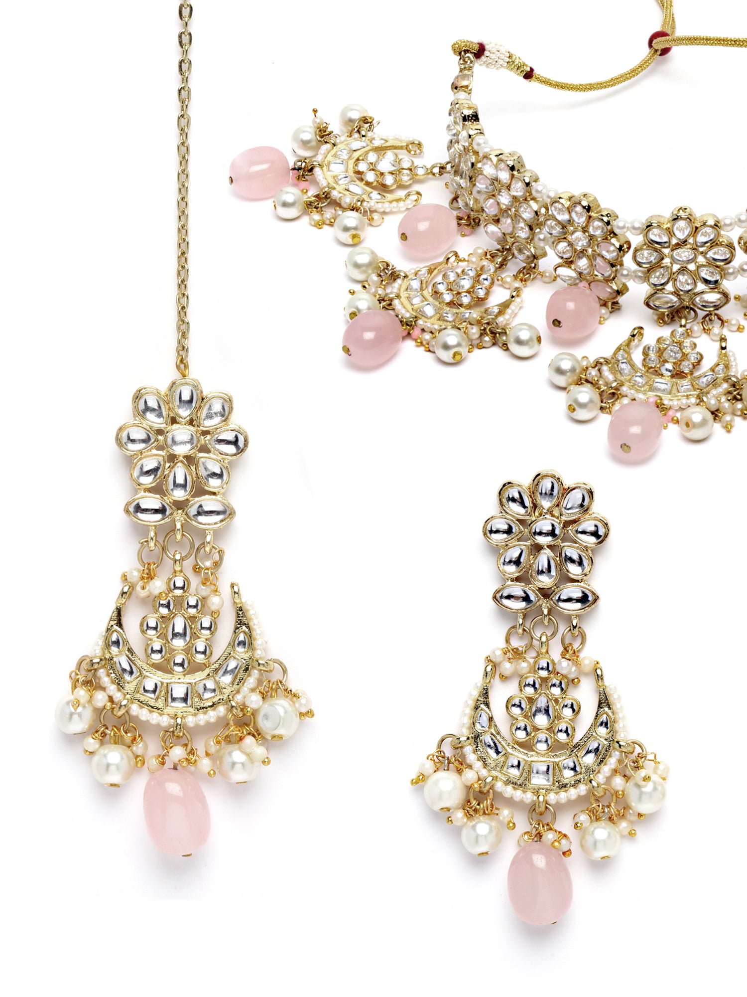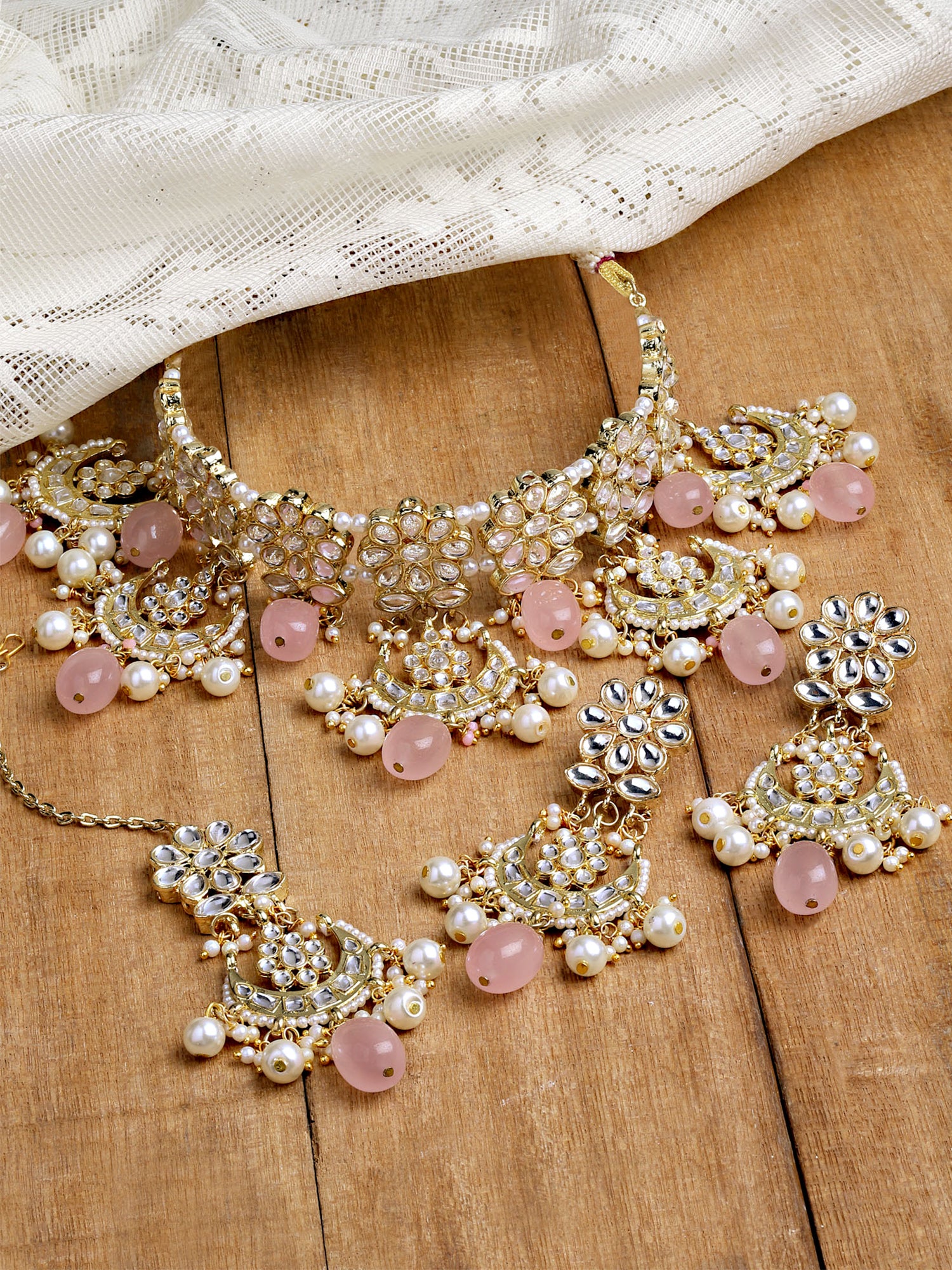 Karatcart Gold Plated Pink Tumble and Pearl Choker Necklace Set