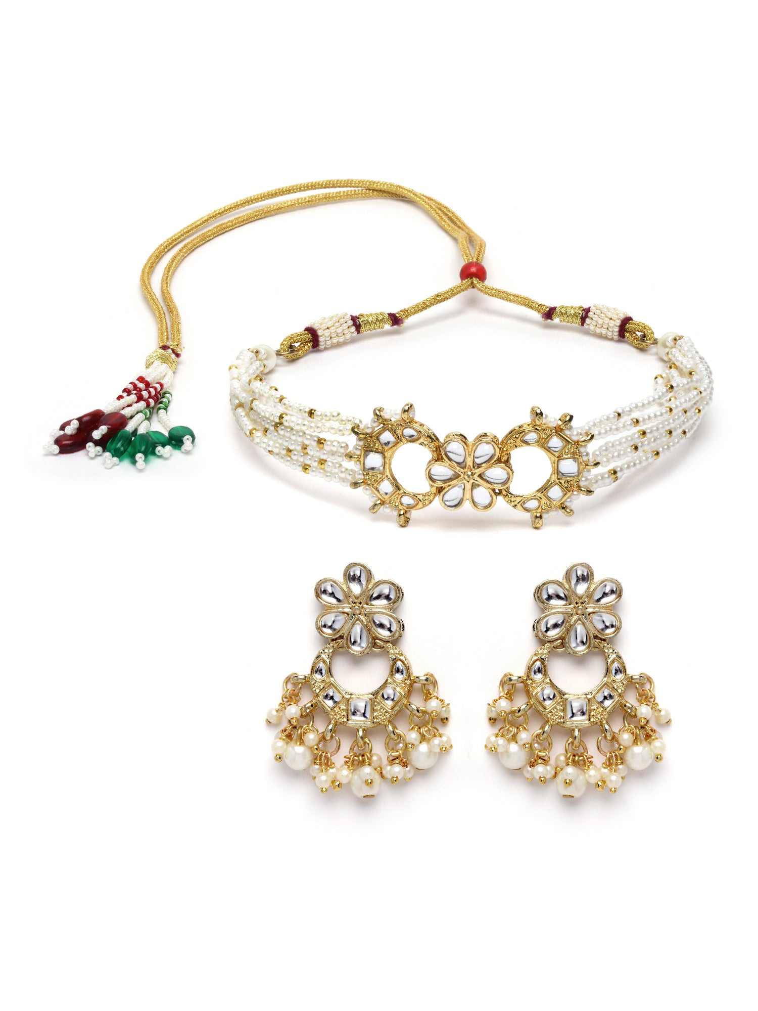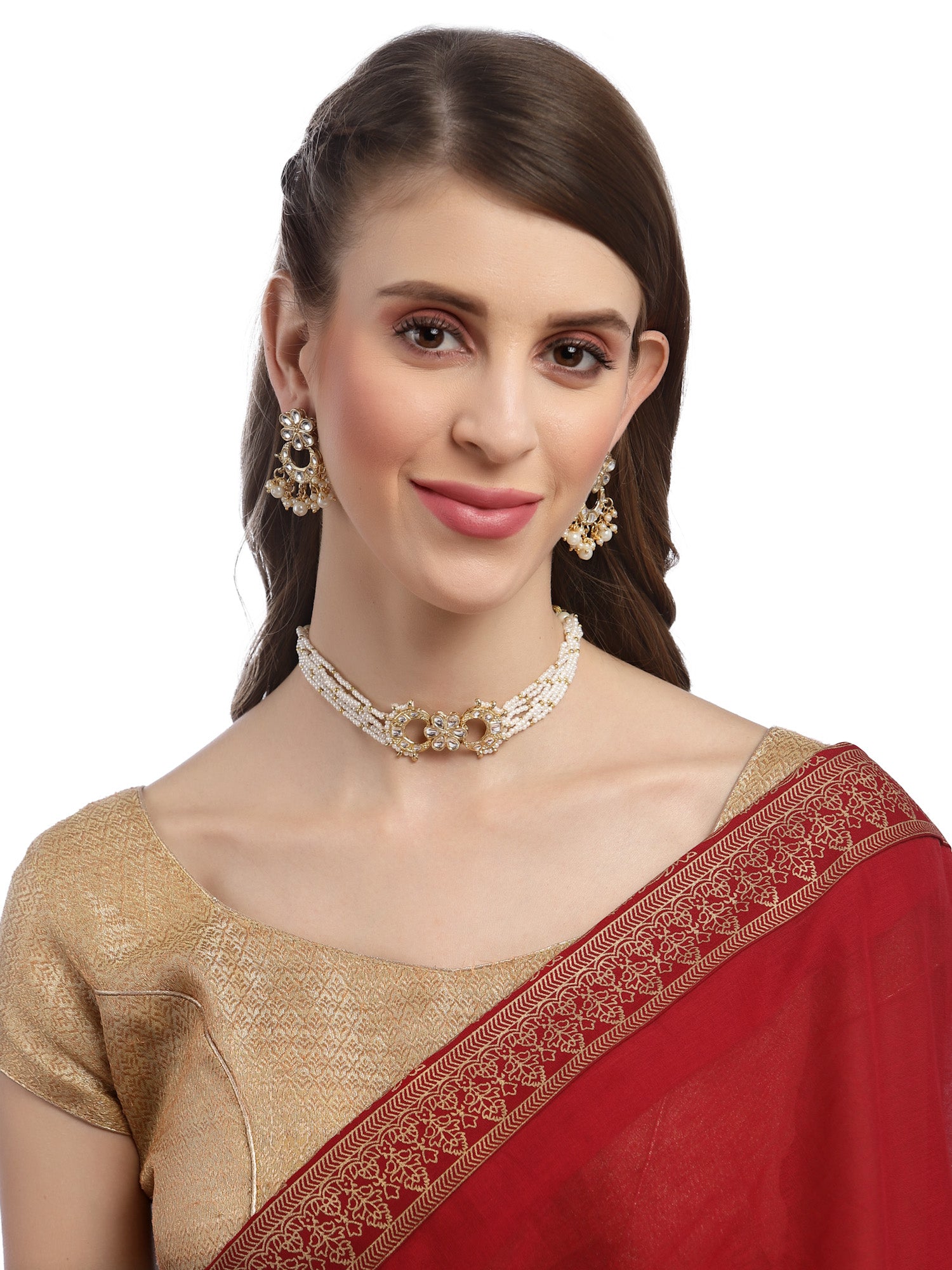 - Karatcart Gold Plated Floral Beaded Choker Necklace Set. It is made with high-quality Kundan Stones which makes them very skin-friendly. Perfect for Weddings, Parties, Festivals, and Traditional Occasions. Gracefully pair Saree, Kurti, or any Indo-western outfit to enhance your look. These are made from toxic-free materials which are Anti-Allergic and Safe for the skin.