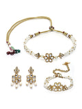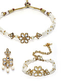 Karatcart Gold Plated Floral Pearl Beaded Choker Necklace with Earrings and Bracelet