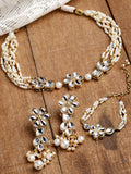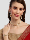 Karatcart Gold Plated Floral Shape Pearl Beaded Choker Necklace with Earrings and Bracelet