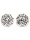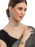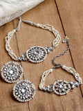 Karatcart Oxidised Silver Floral Shape Pearl Beaded Choker Necklace with Earrings and Bracelet