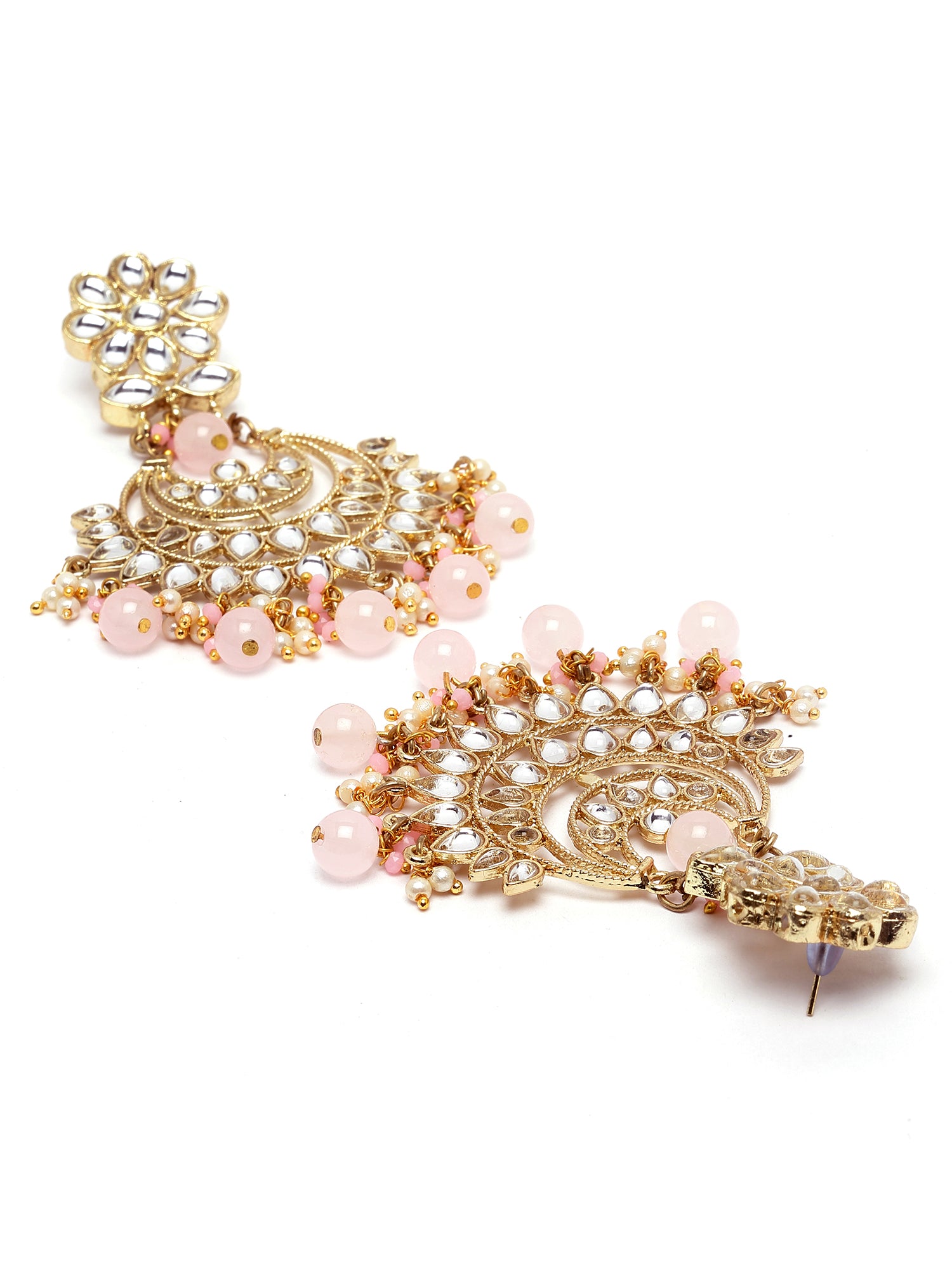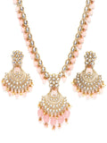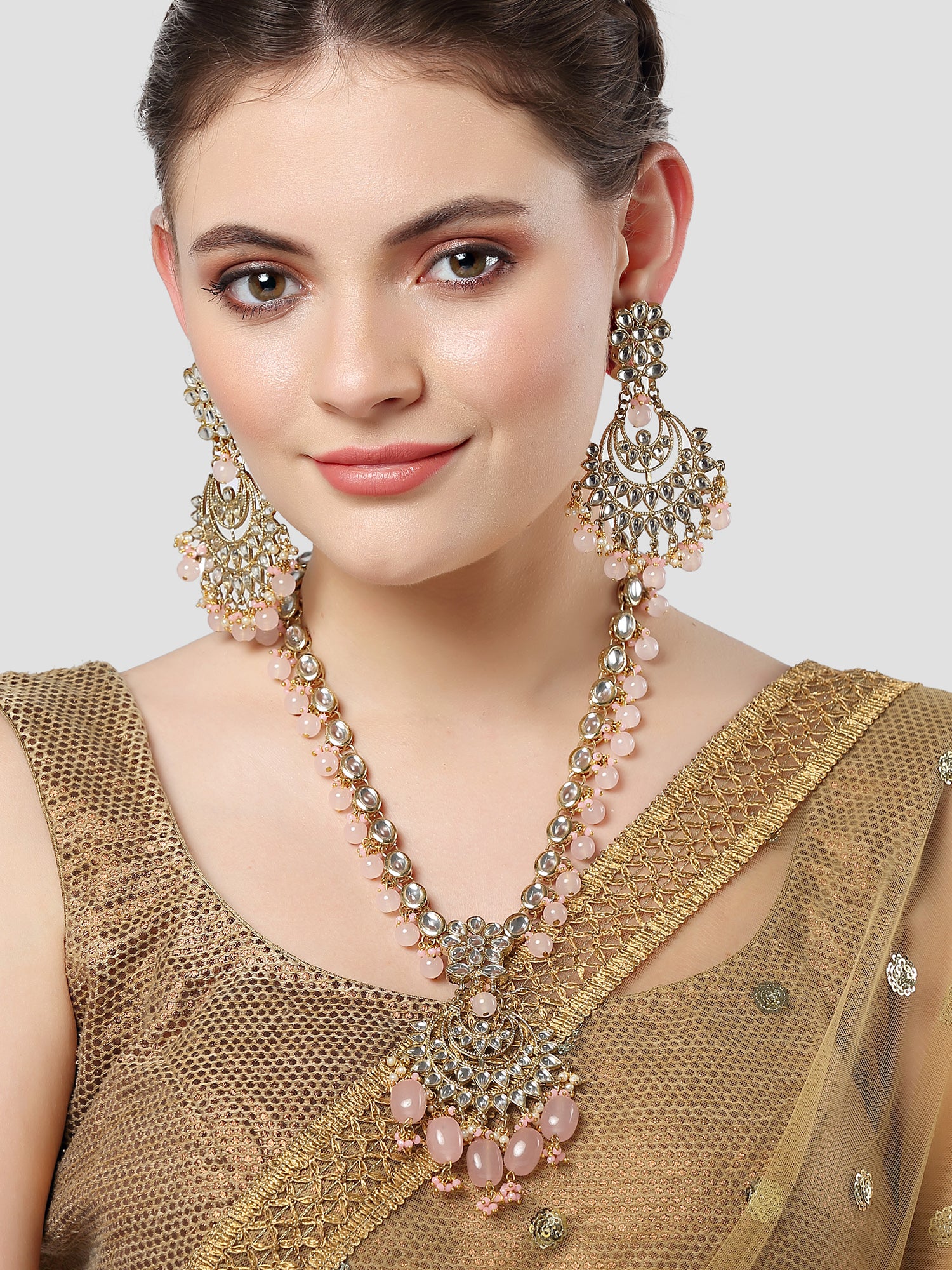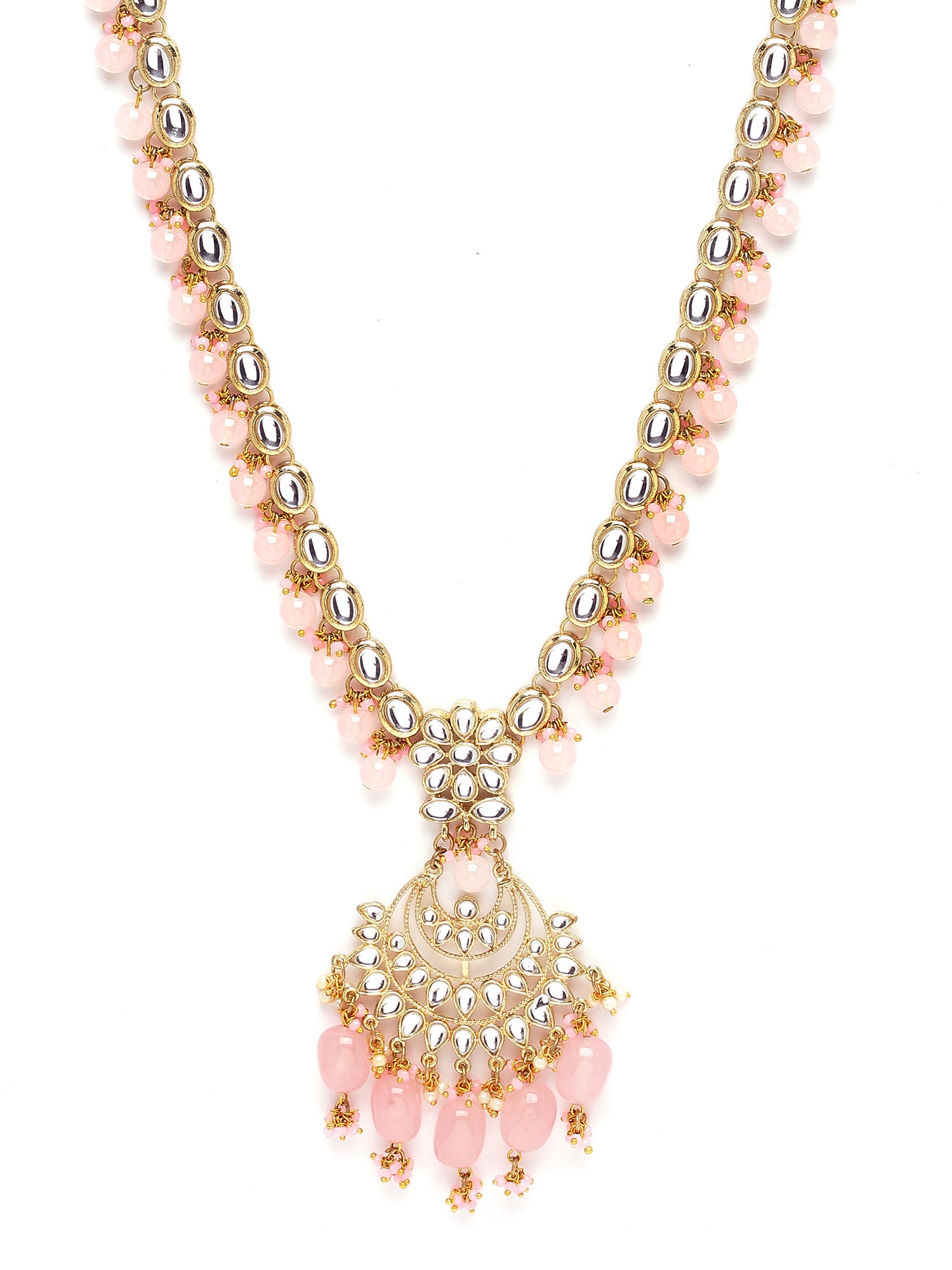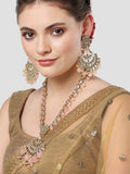 Karatcart Gold Plated Pink Tumble Studded Kundan Rani-Haar Necklace Set for Women