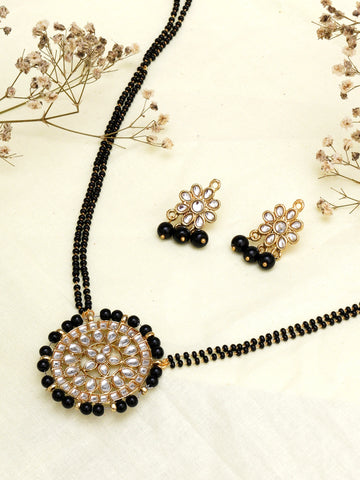 Karatcart Gold Plated Handcrafted Black Floral Kundan Mangalsutra with Earrings