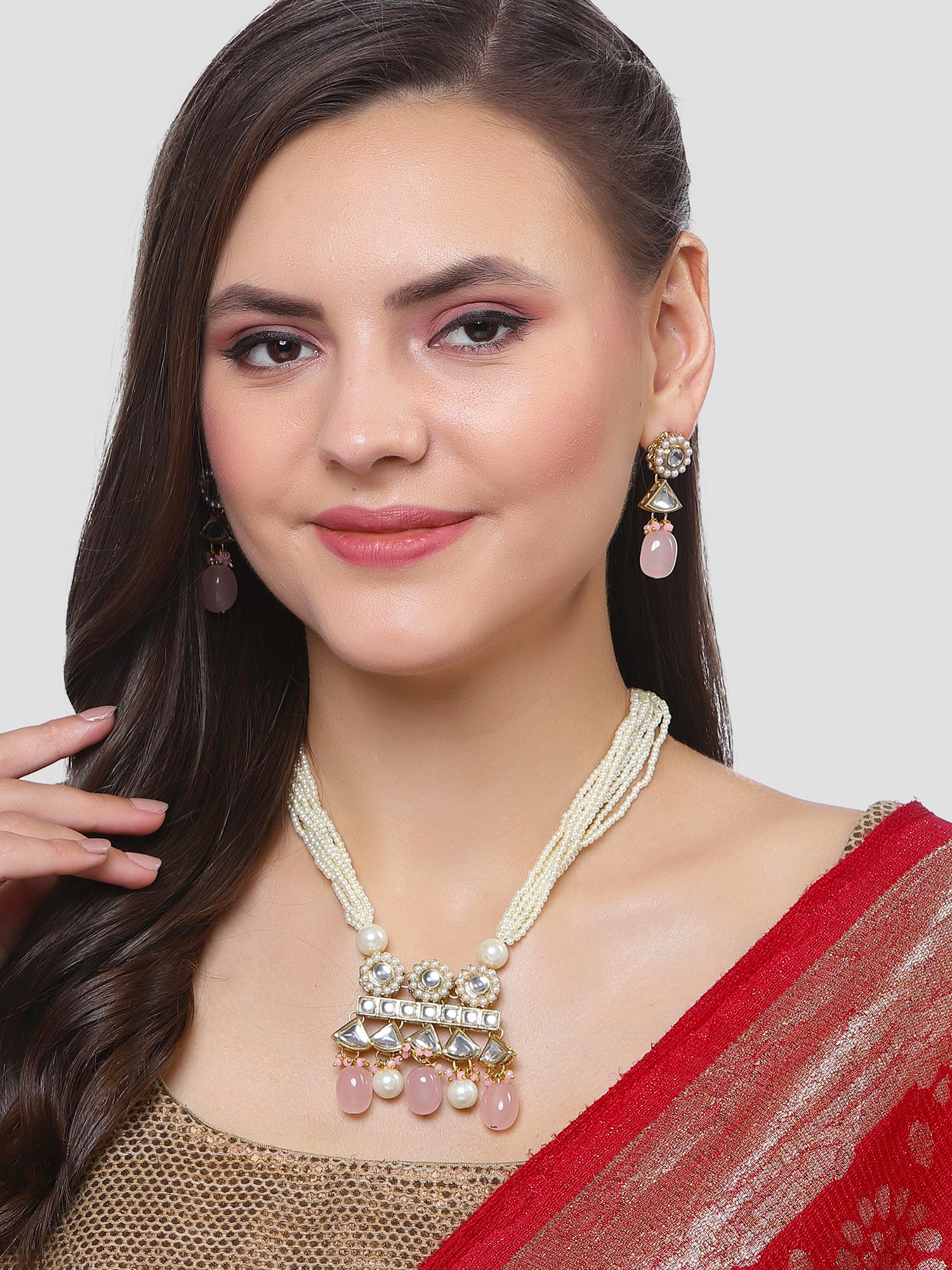 - Karatcart Gold Plated Pink Tumble and Pearl Rani Haar Necklace Set for Women. Our products are designed with high-quality Kundan Stones and these products are enhanced with plating that are skin-friendly & with love to reach your heart.