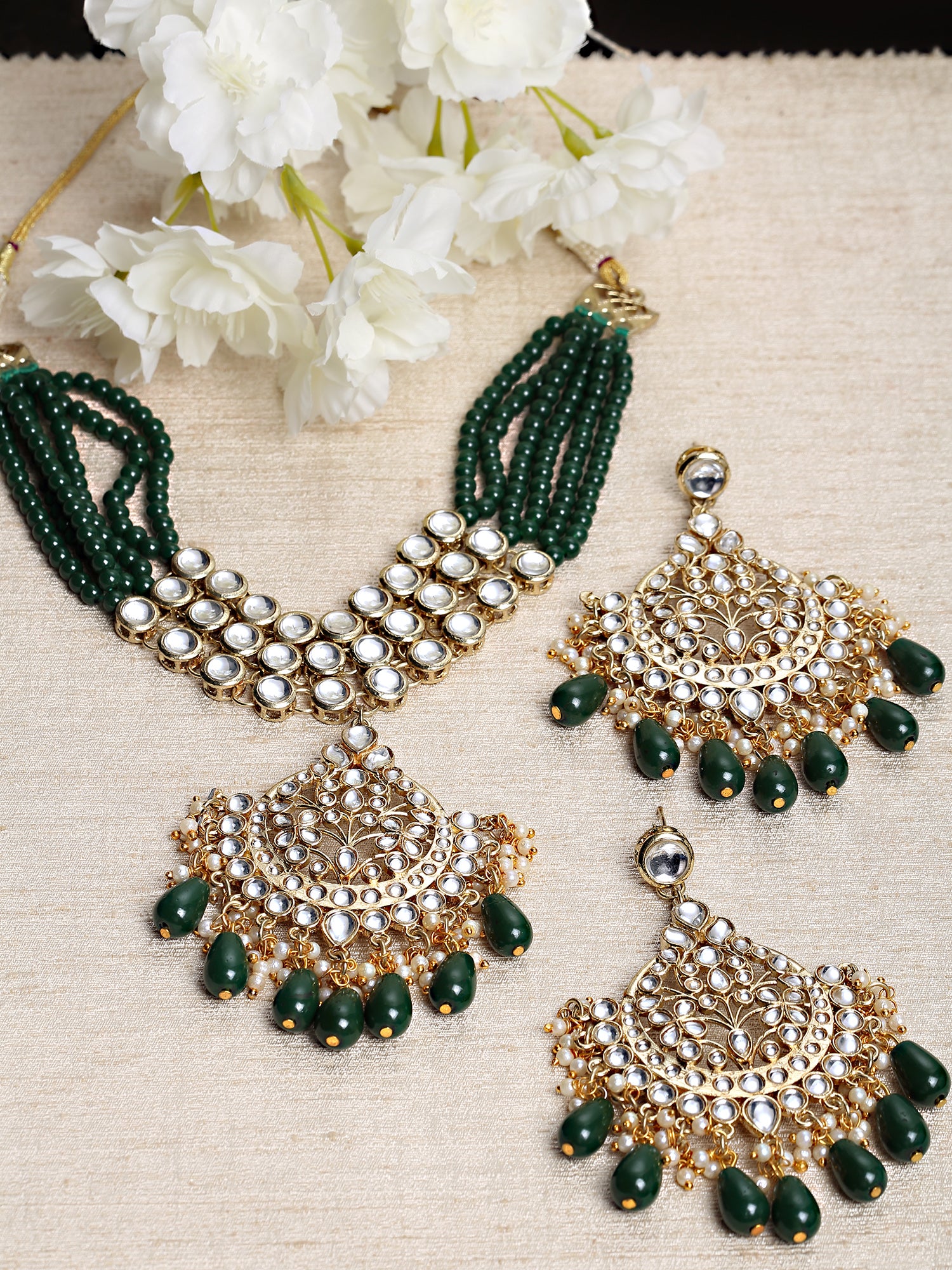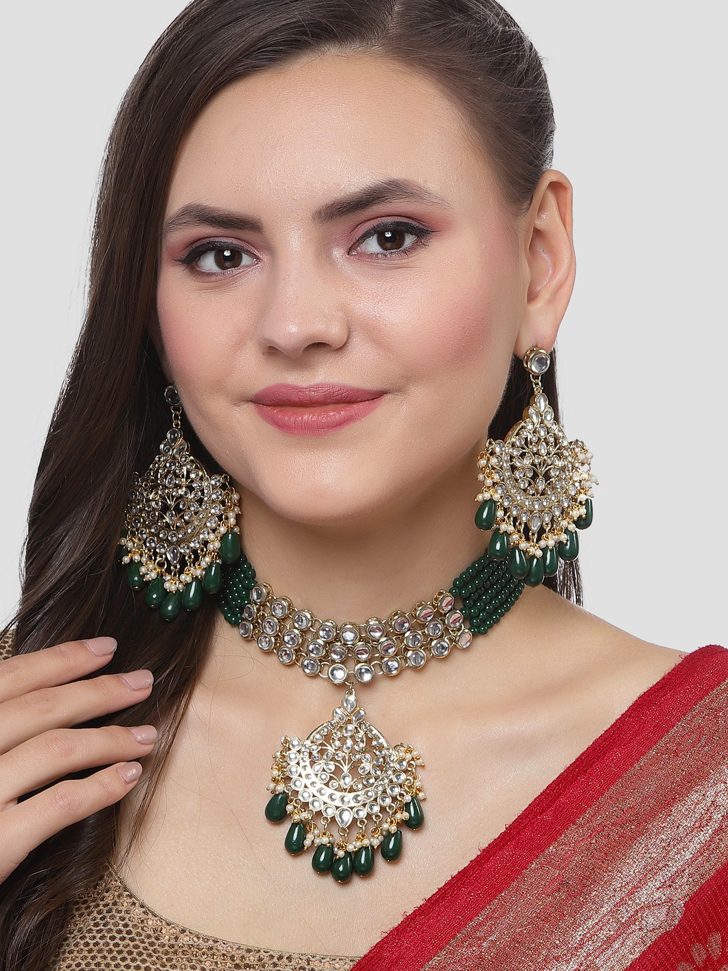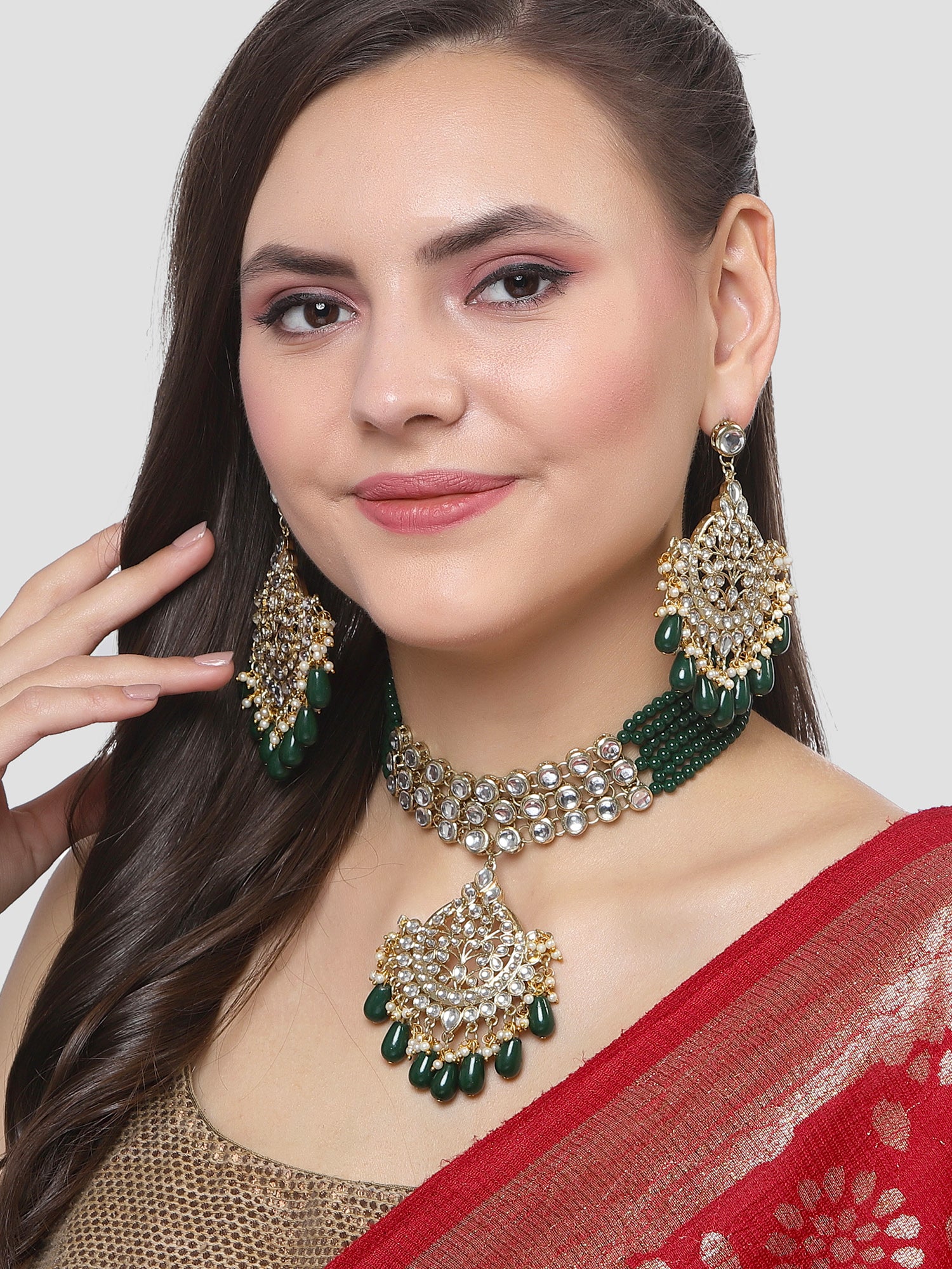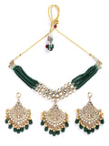 Karatcart Gold Plated Green Drop Beads Kundan Choker Necklace Set for Women
