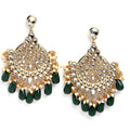 Elevate your elegance with the Gold Plated Green Drop Beads Kundan Choker Necklace Set for Women. This stunning set features a beautifully designed choker adorned with vibrant green drop beads and intricate Kundan stones, creating a striking and sophisticated look. The gold-plated finish provides a radiant shine and ensures lasting durability, making this piece a timeless addition to your jewelry collection.