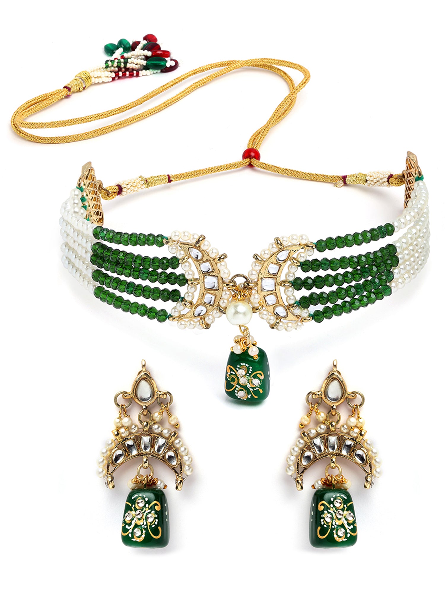 - This is a Green Jewellery Set by Brand Karatcart which has Kundan stones.This is Gold Plated. We at KARATCART understand your desire to look the best on any day & we thrive in making any day an occasion. Every individual at Karatcart carries a passion for jewellery and it reflects in our beautiful designs as well as in our breathtaking craftsmanship. We create unique jewellery so you can make heads turn..