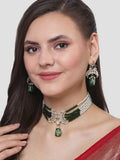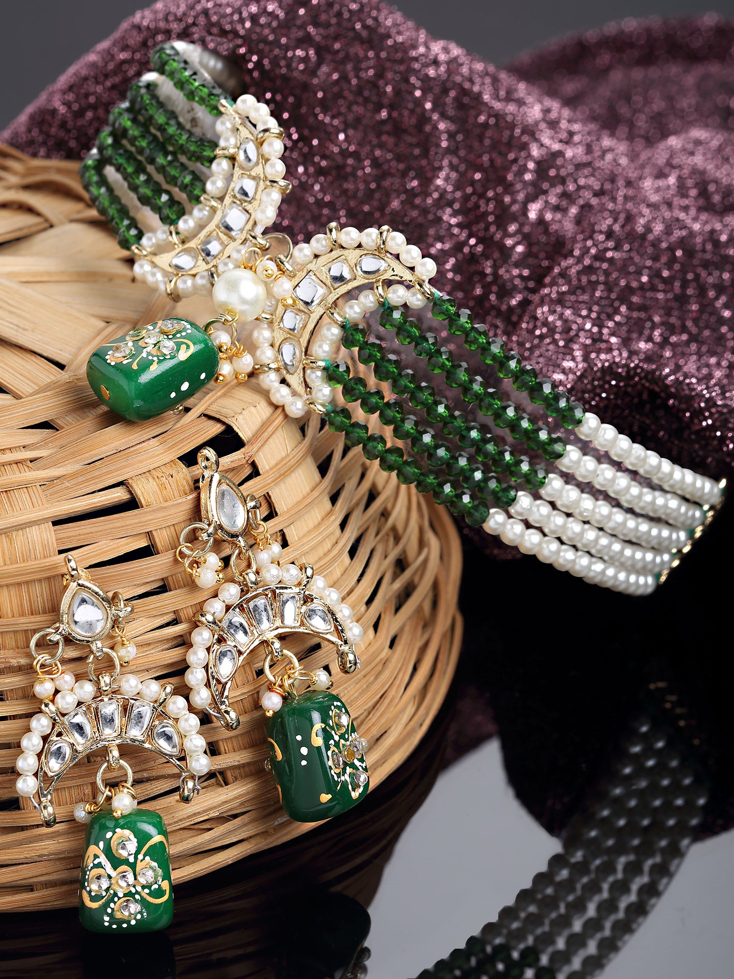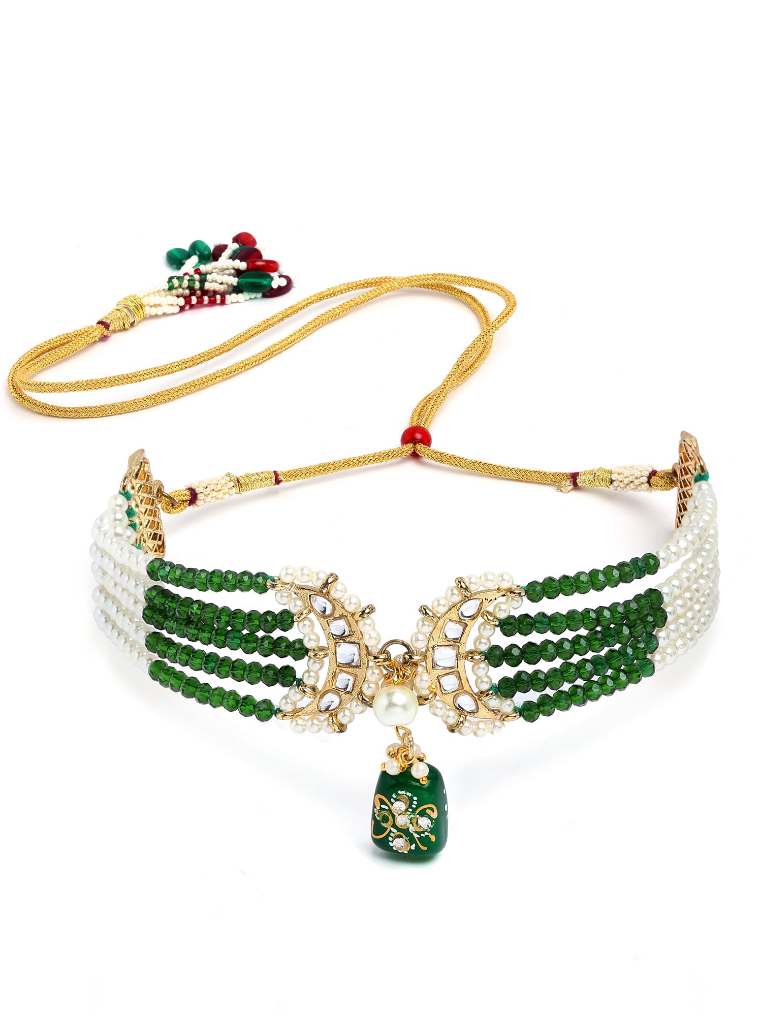 Karatcart Gold Plated Green Tumble Beaded Choker Necklace Set for Women