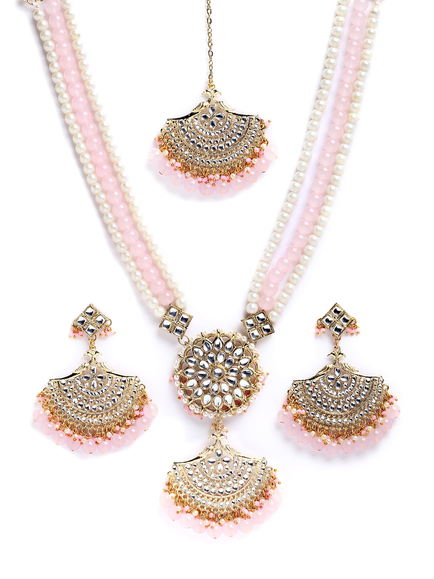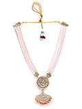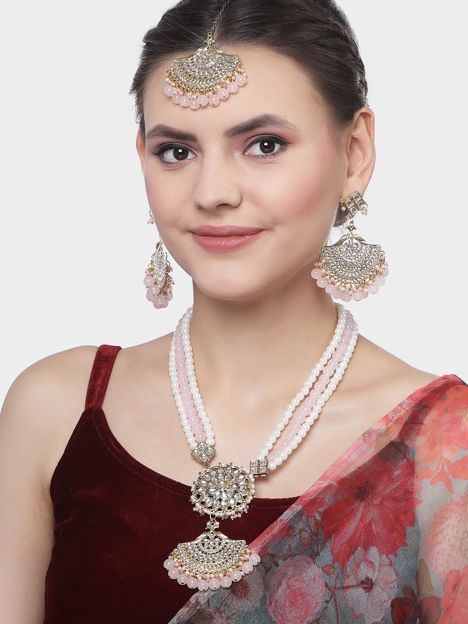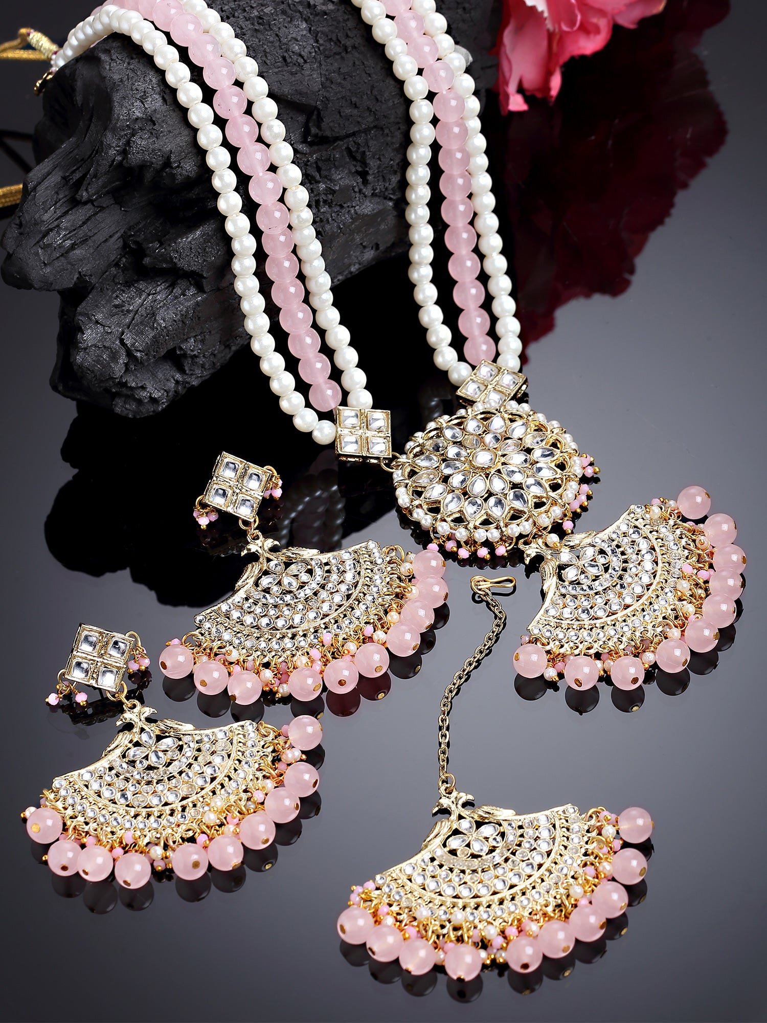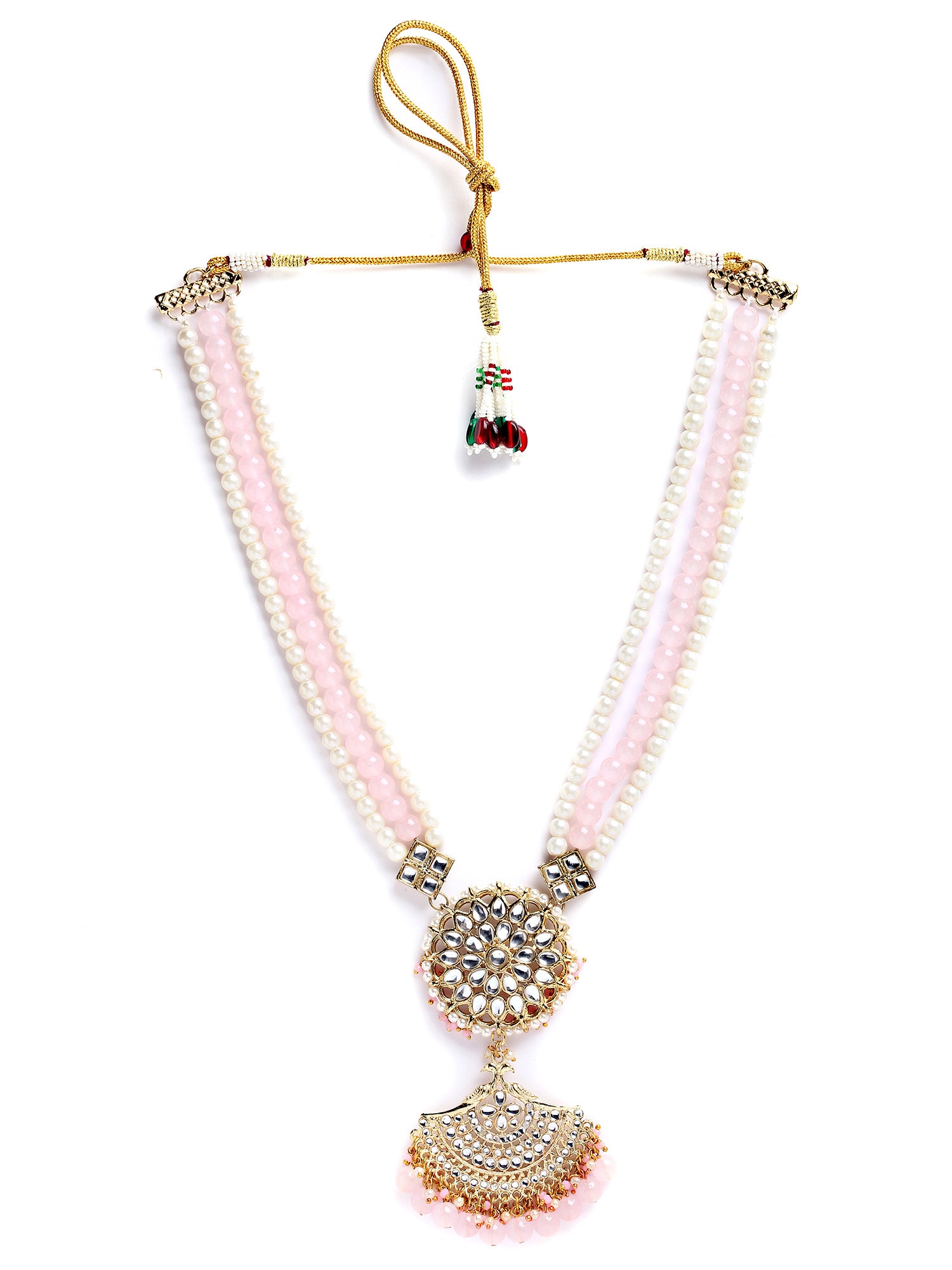Karatcart Gold Plated Pink Beads and Pearl Rani Haar Necklace Set for Women