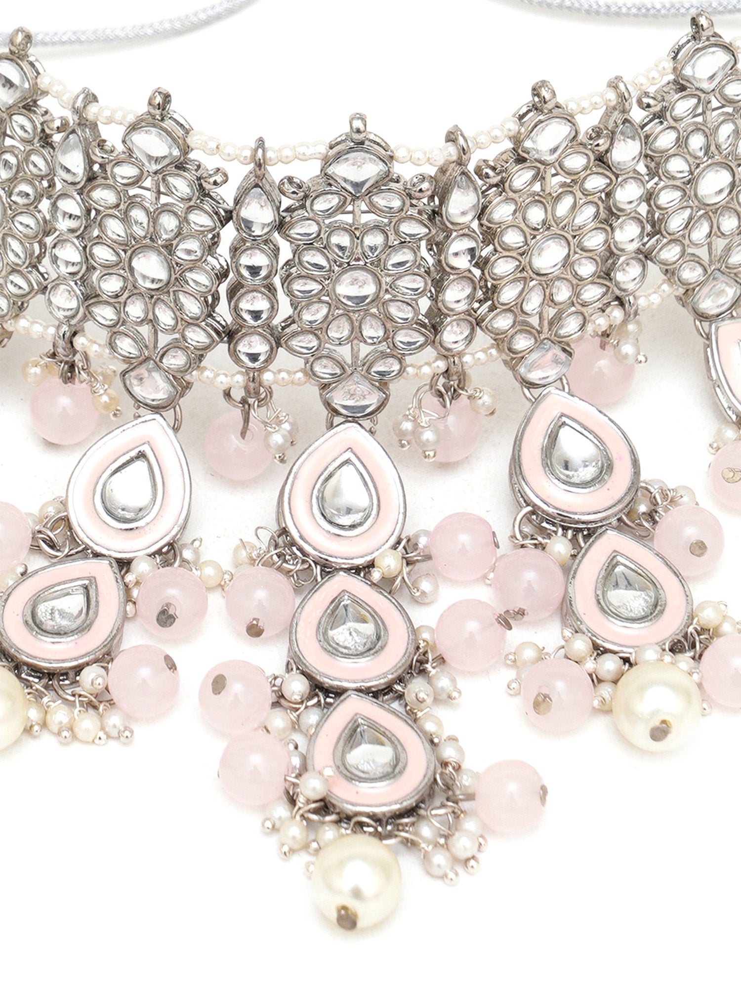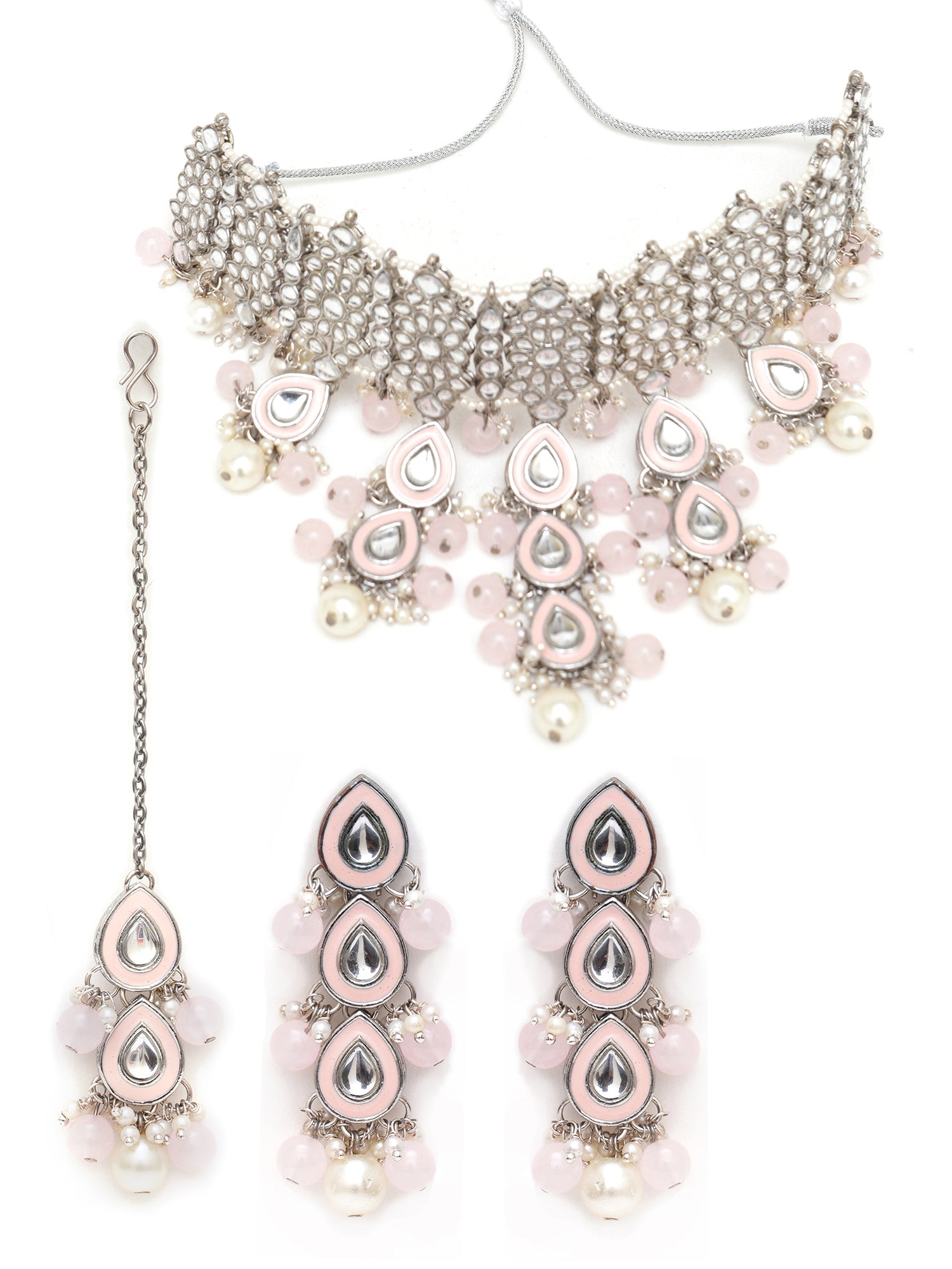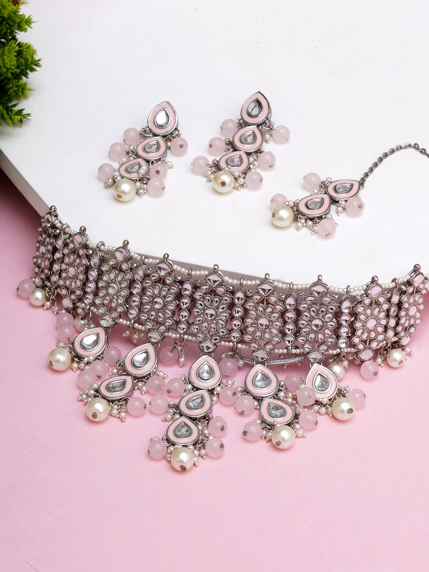 - Karatcart Light Pink Beads Oxidised Silver Kundan Choker Necklace Set for Women. Our products are designed with high-quality Kundan Stones and these products are enhanced with plating that are skin-friendly & with love to reach your heart.