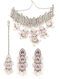 Karatcart Light Pink Beads Oxidised Silver Kundan Choker Necklace Set for Women