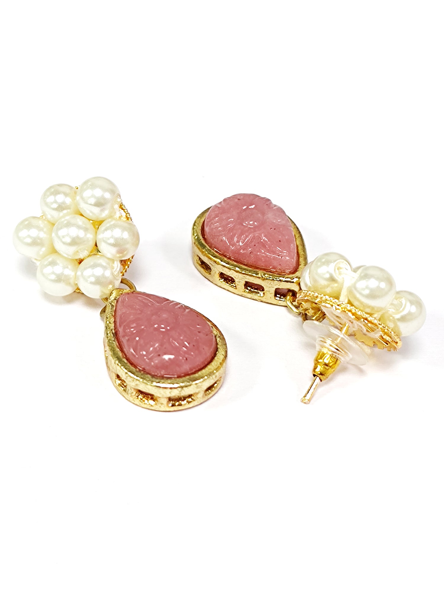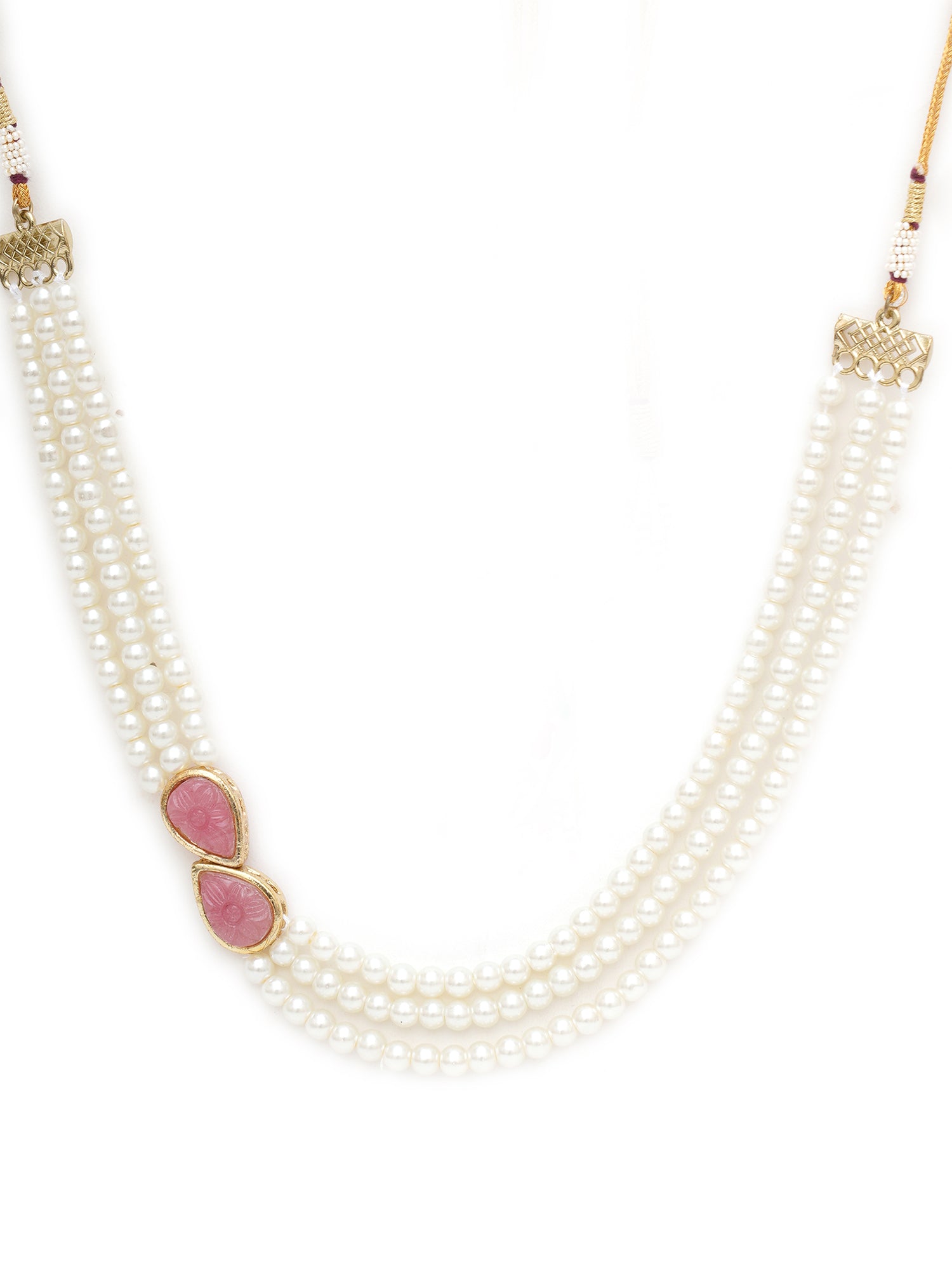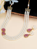 Karatcart Pink Stone Studded Pearl Kundan Necklace Set for Women