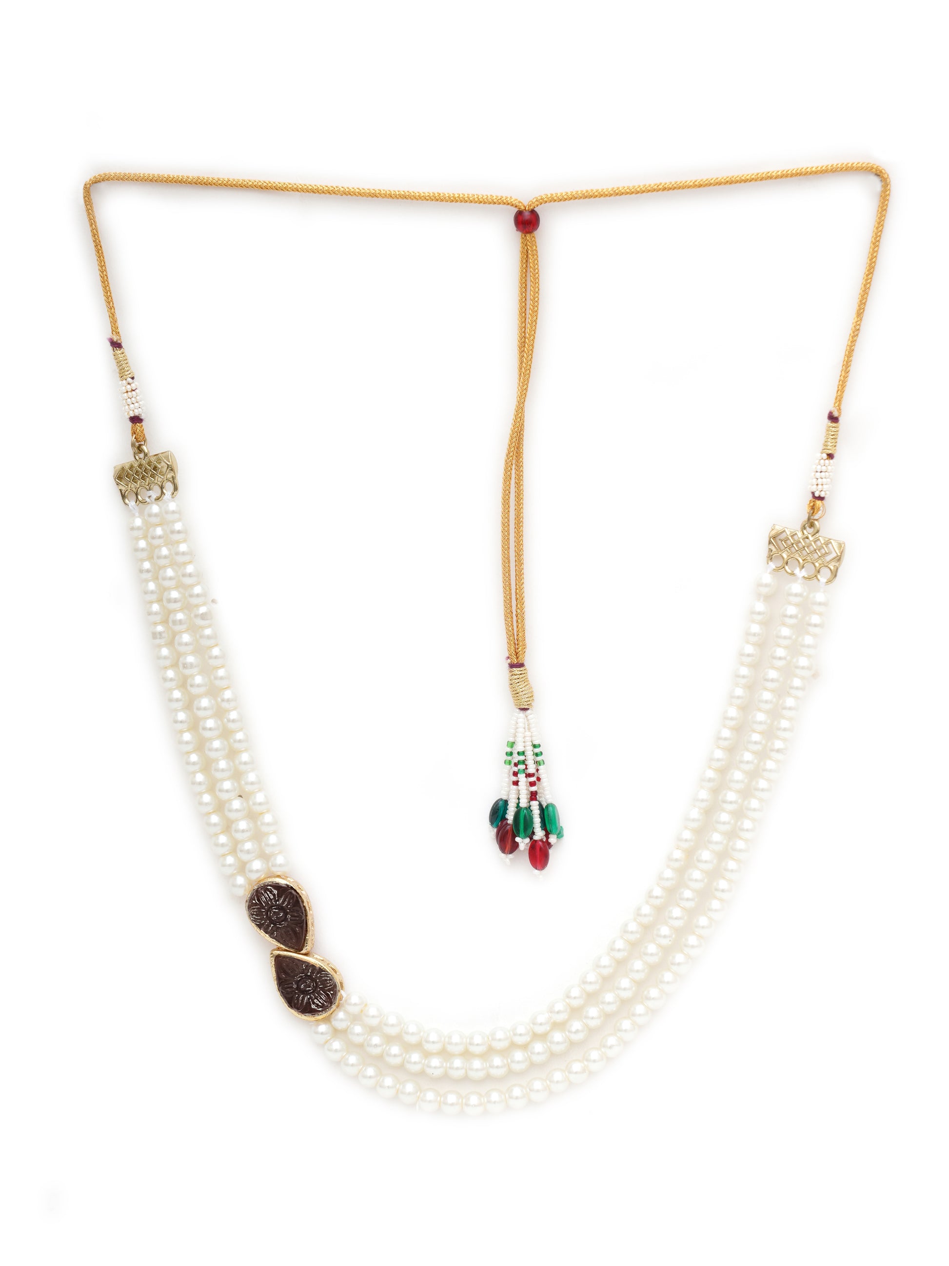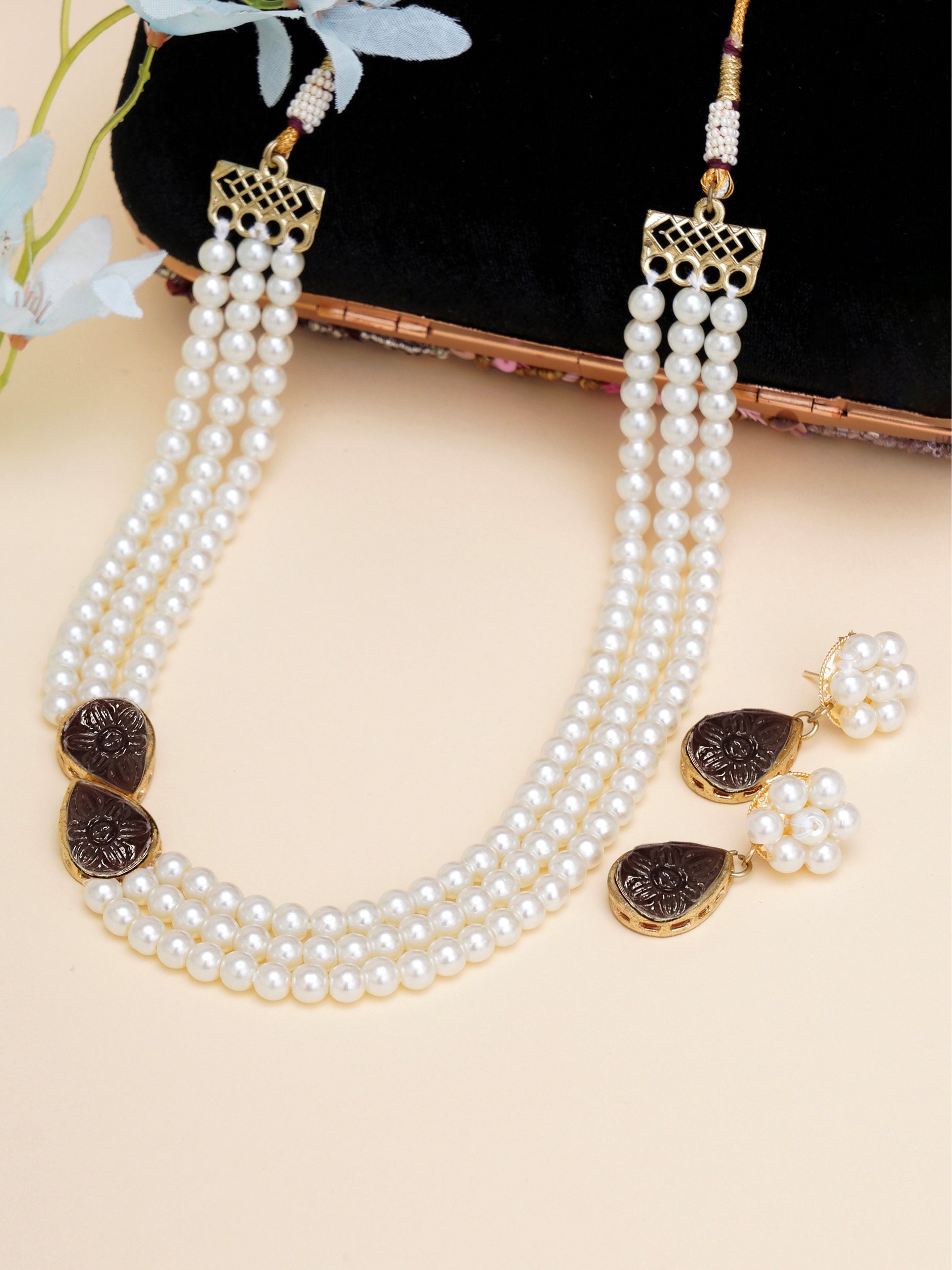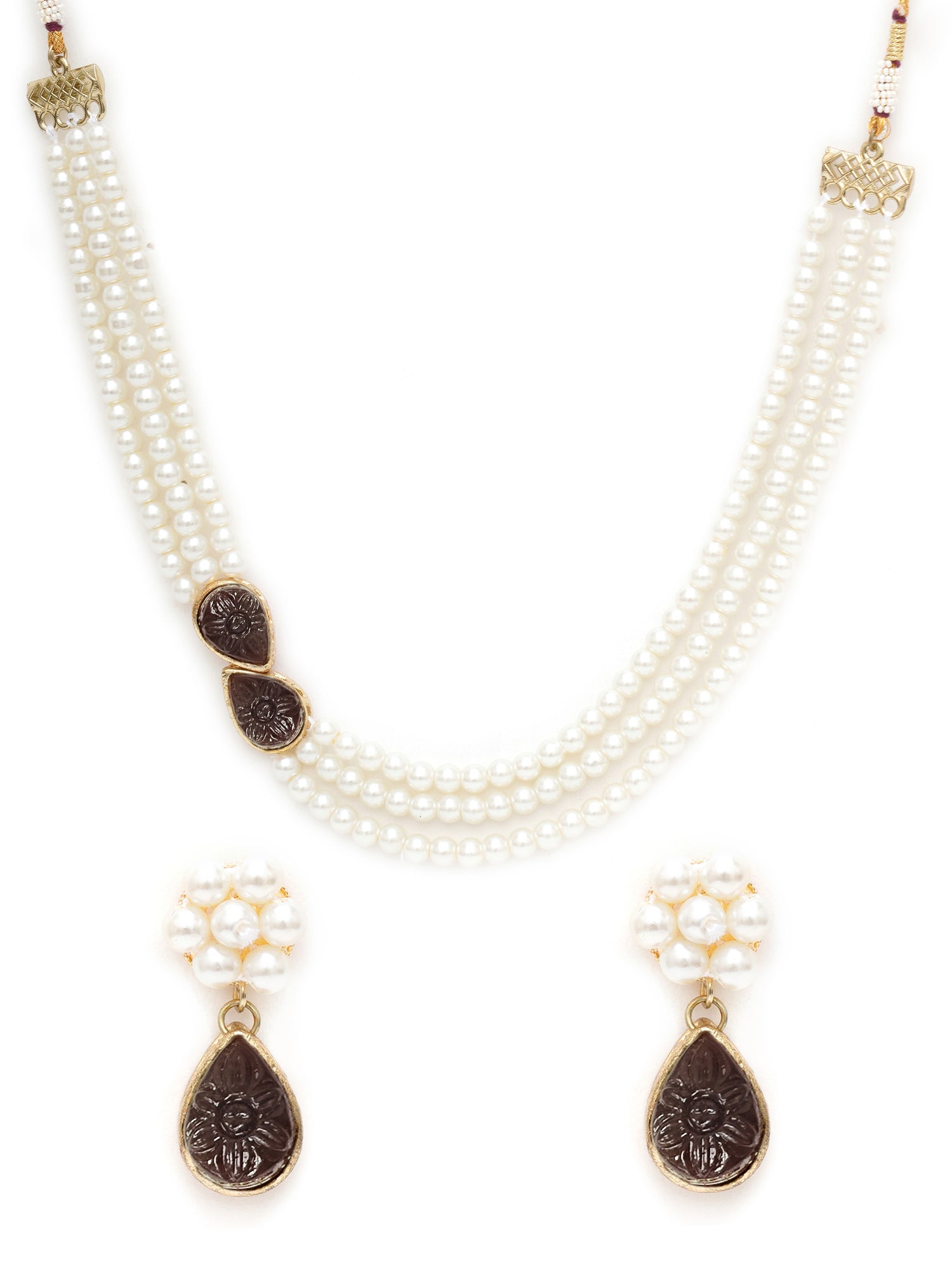 Karatcart Brown Stone Studded Pearl Kundan Necklace Set for Women