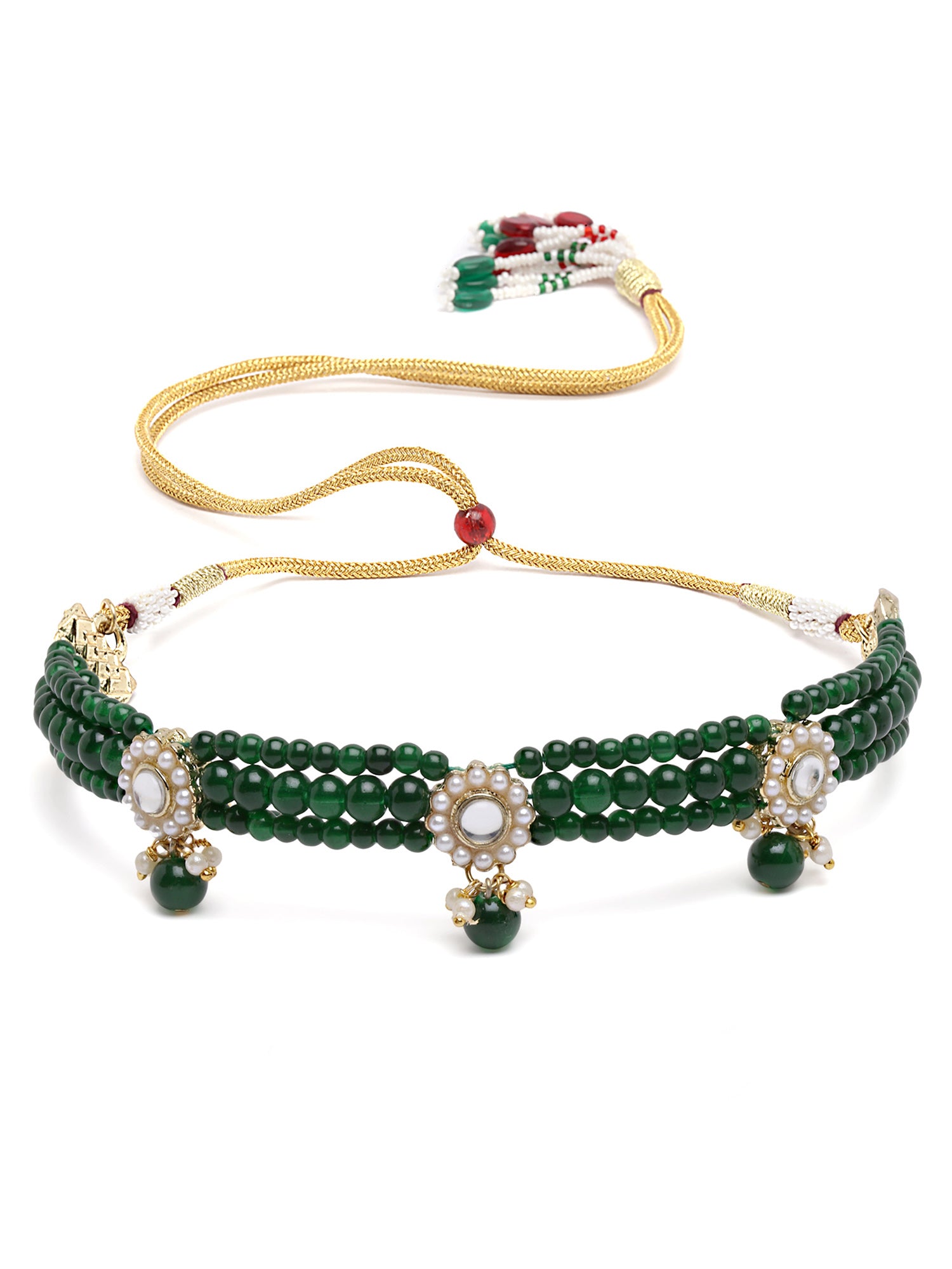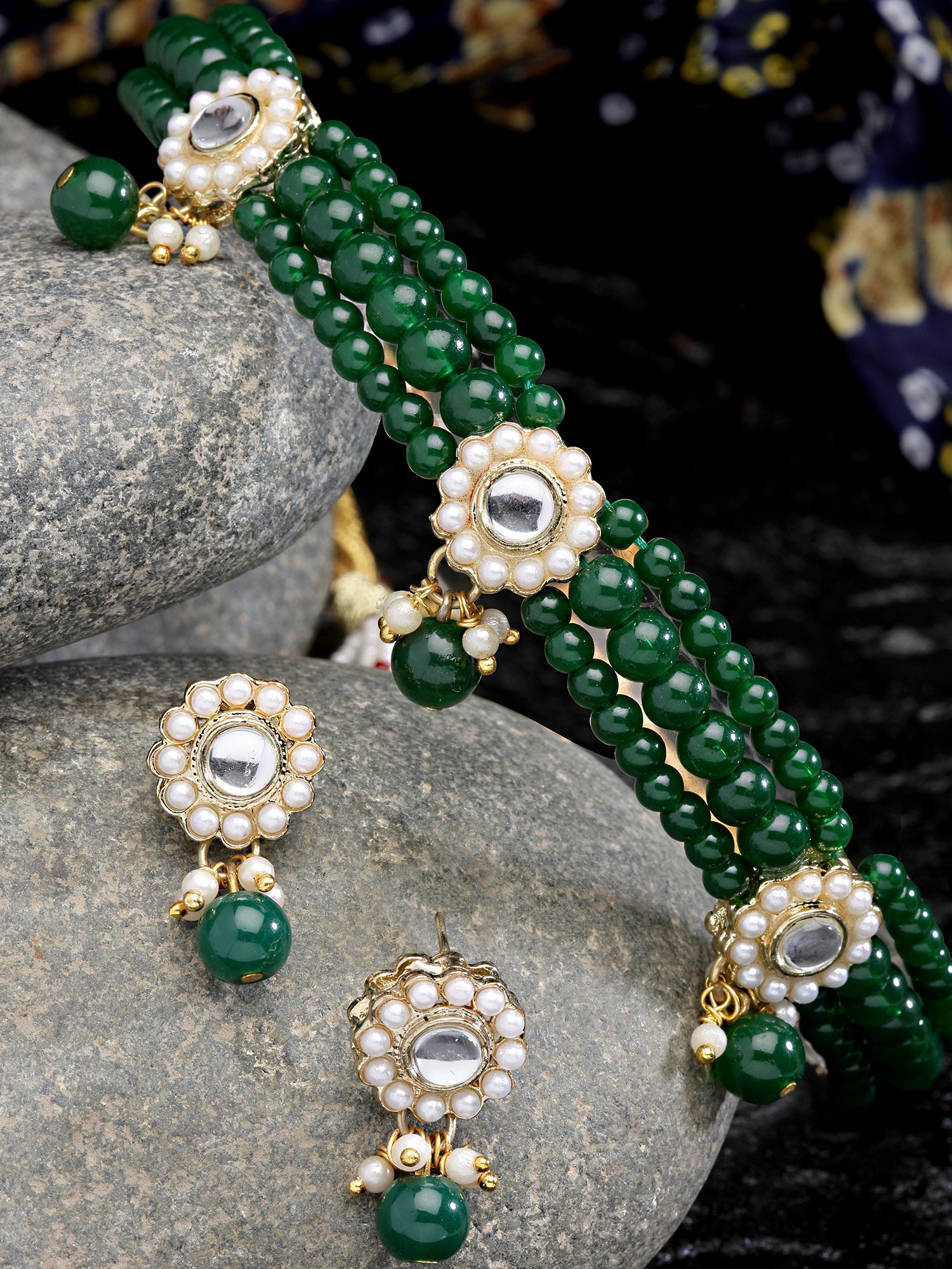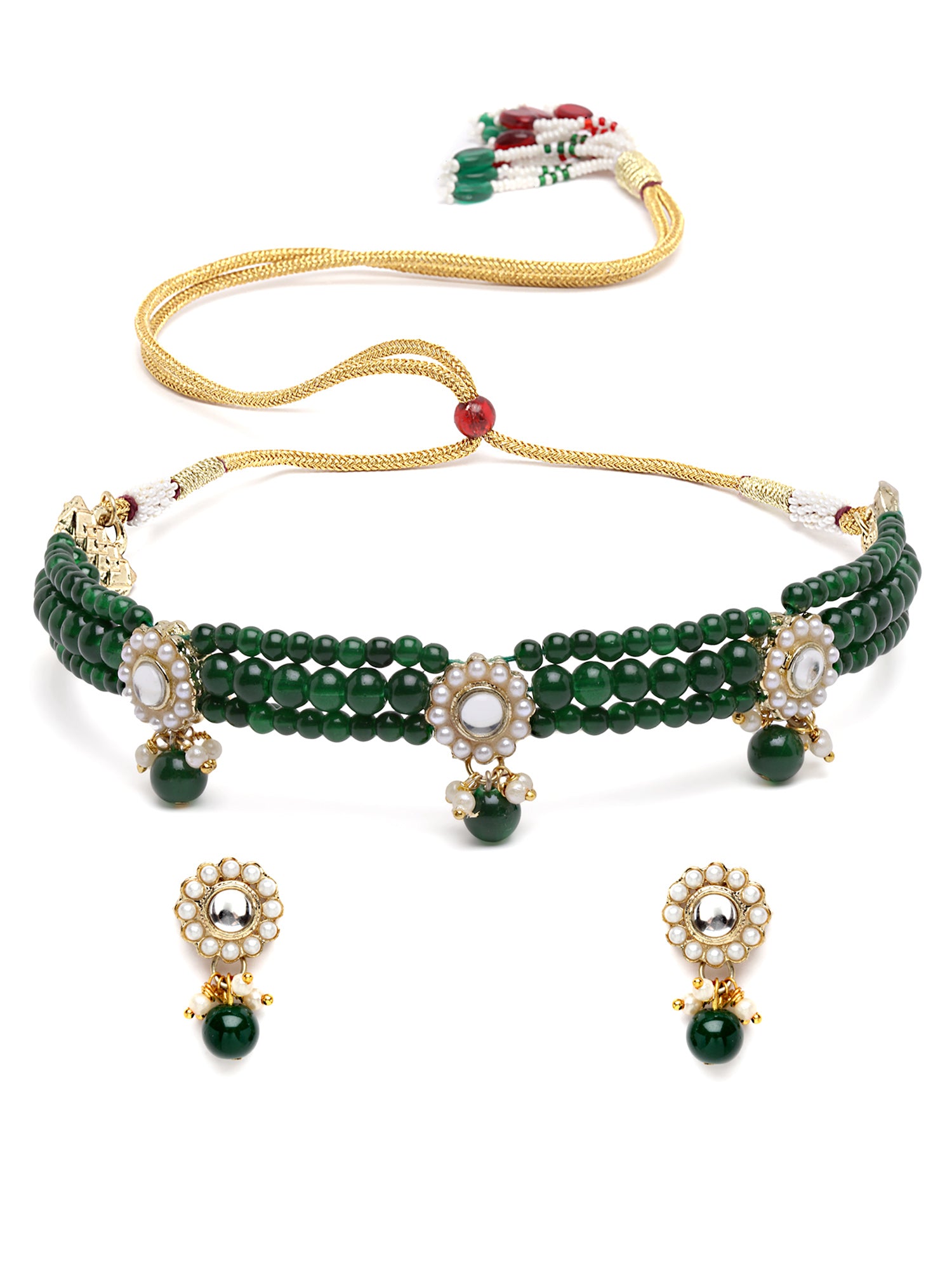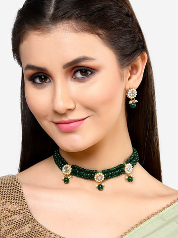 Karatcart Gold Plated Green Beaded Kundan Choker Necklace Set for Women