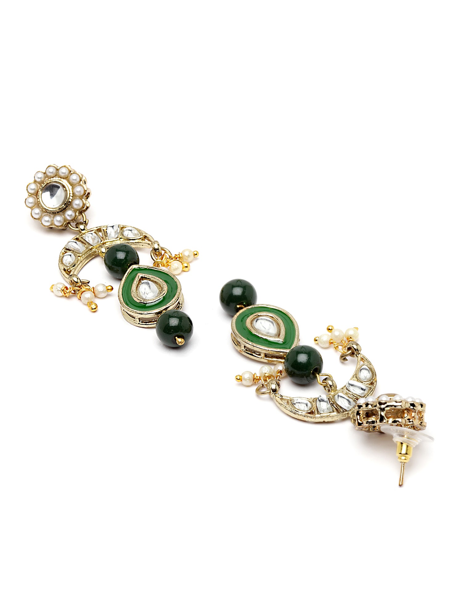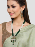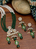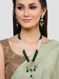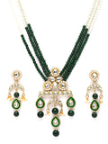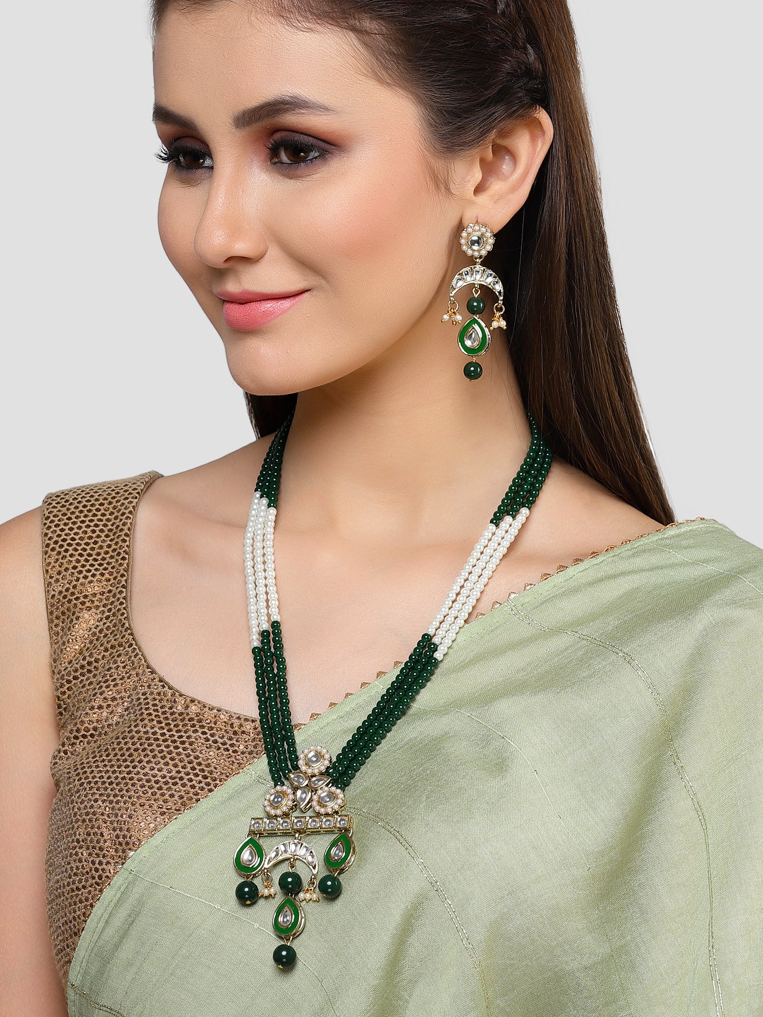 Karatcart Gold Plated Green Beads and Pearl Kundan Rani Haar Necklace Set for Women