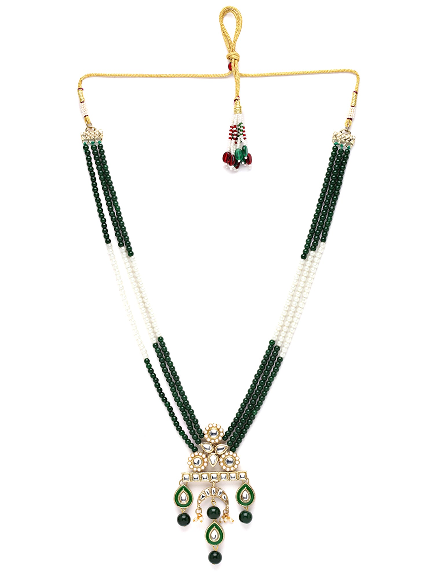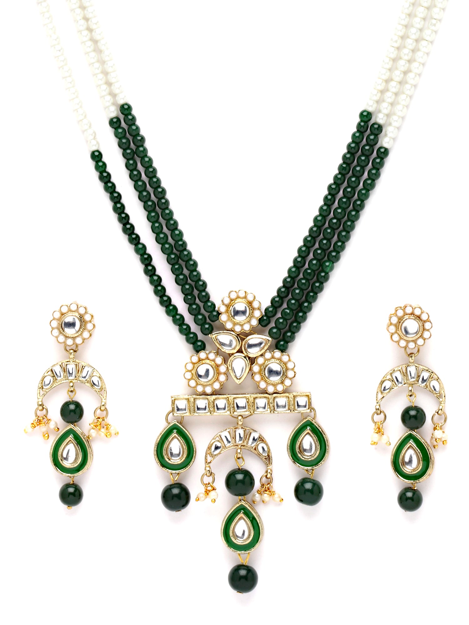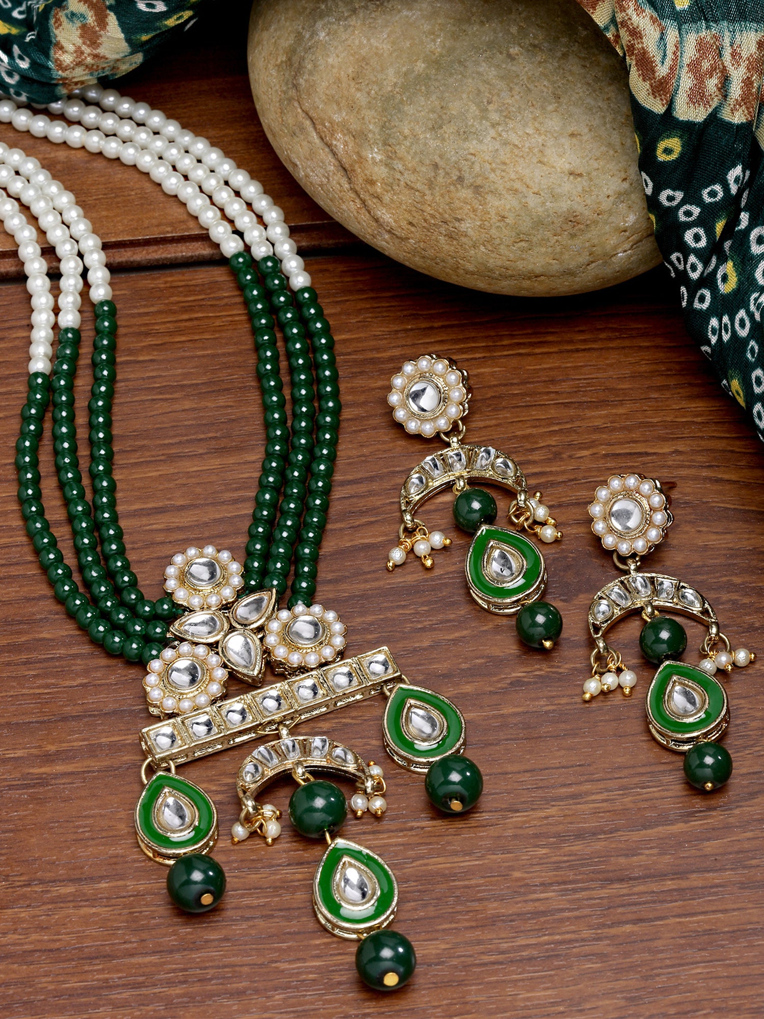 - Karatcart Gold Plated Green Beads and Pearl Kundan Rani Haar Necklace Set for Women. Our products are designed with high-quality material and these products are enhanced with plating that are skin-friendly & with love to reach your heart.