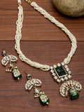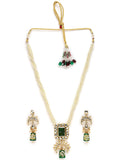 Karatcart Gold Plated Green Carved Stone and Tumble Studded Kundan Rani Haar Necklace Set for Women