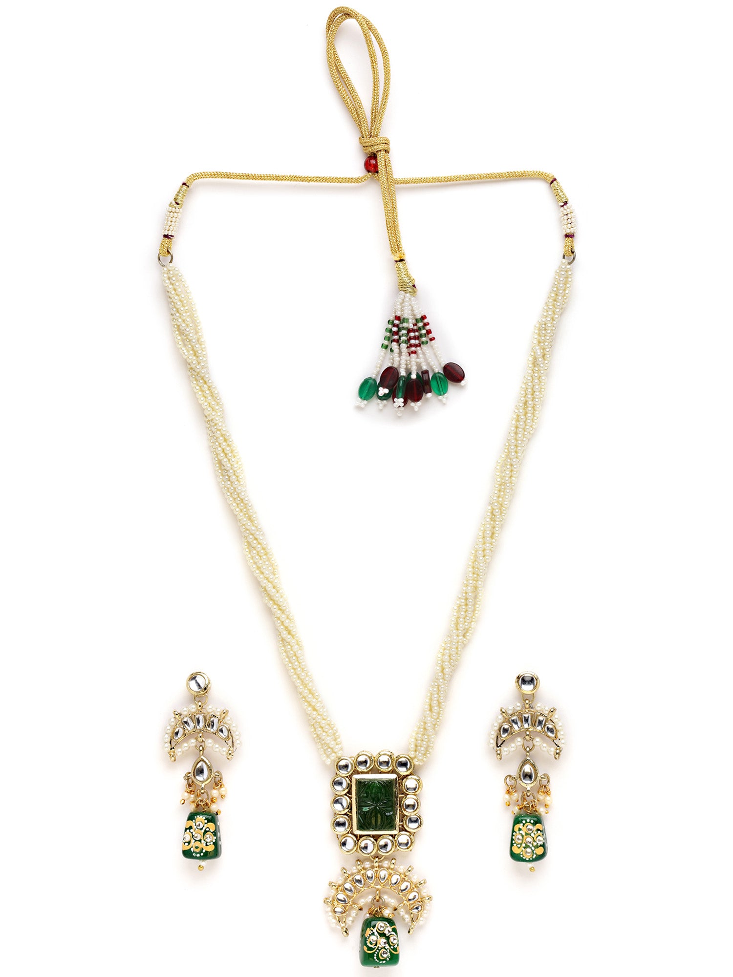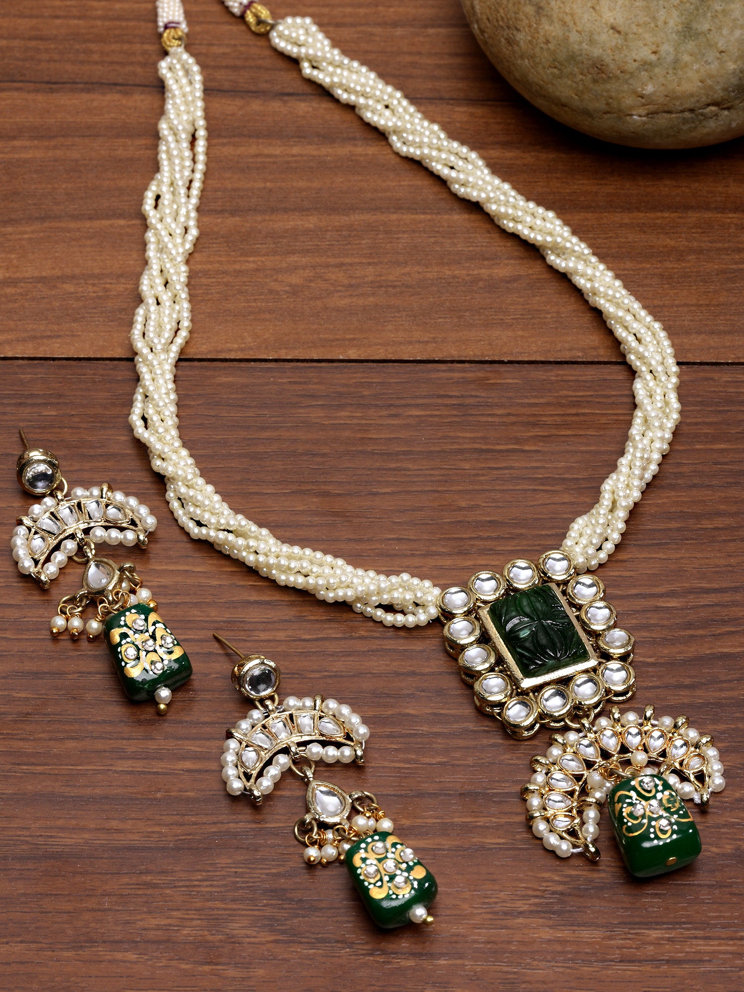- This is a Green Jewellery Set by Brand Karatcart which has Kundan stones.This is Gold Plated. We at KARATCART understand your desire to look the best on any day & we thrive in making any day an occasion. Every individual at Karatcart carries a passion for jewellery and it reflects in our beautiful designs as well as in our breathtaking craftsmanship. We create unique jewellery so you can make heads turn..