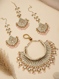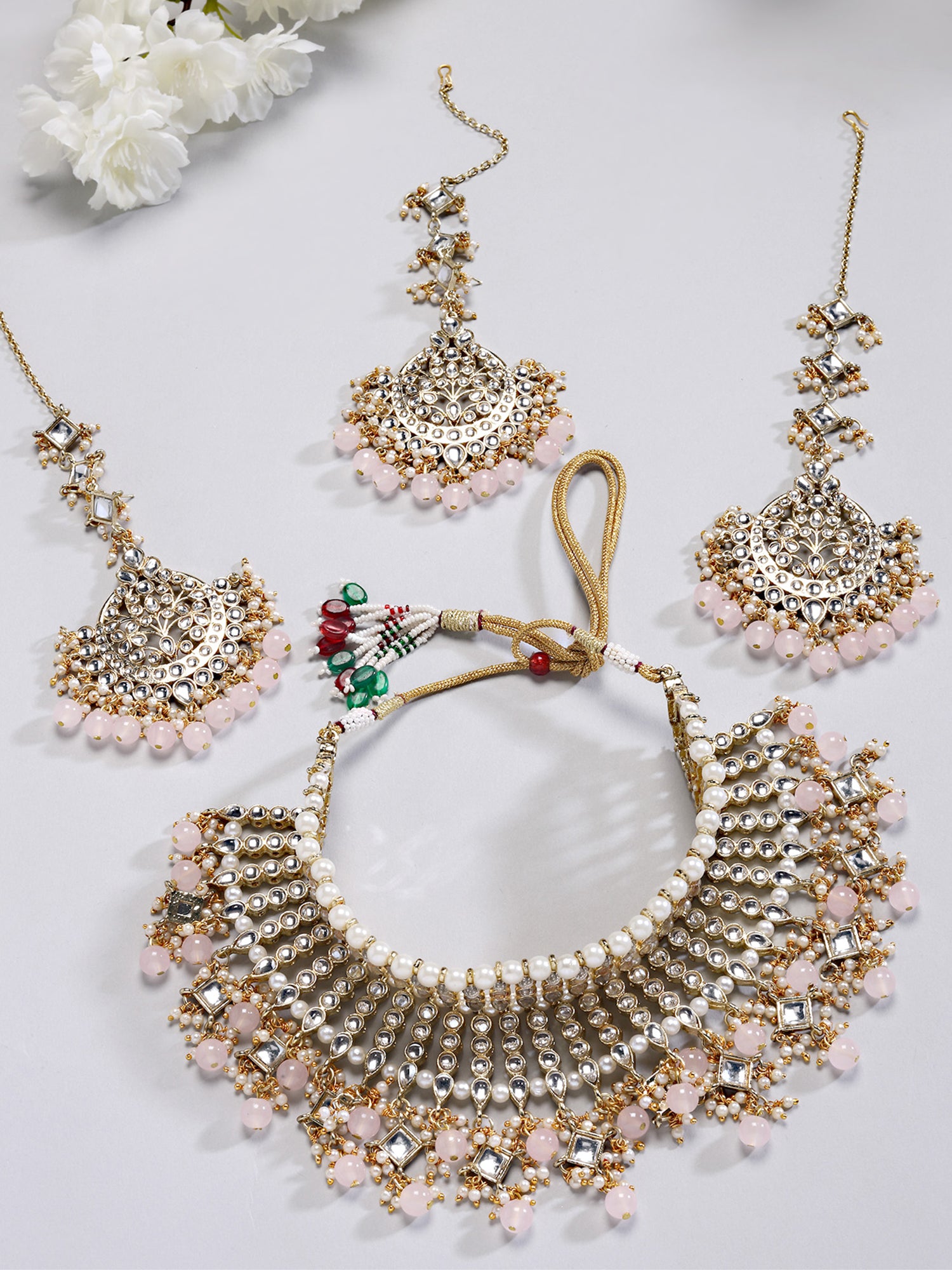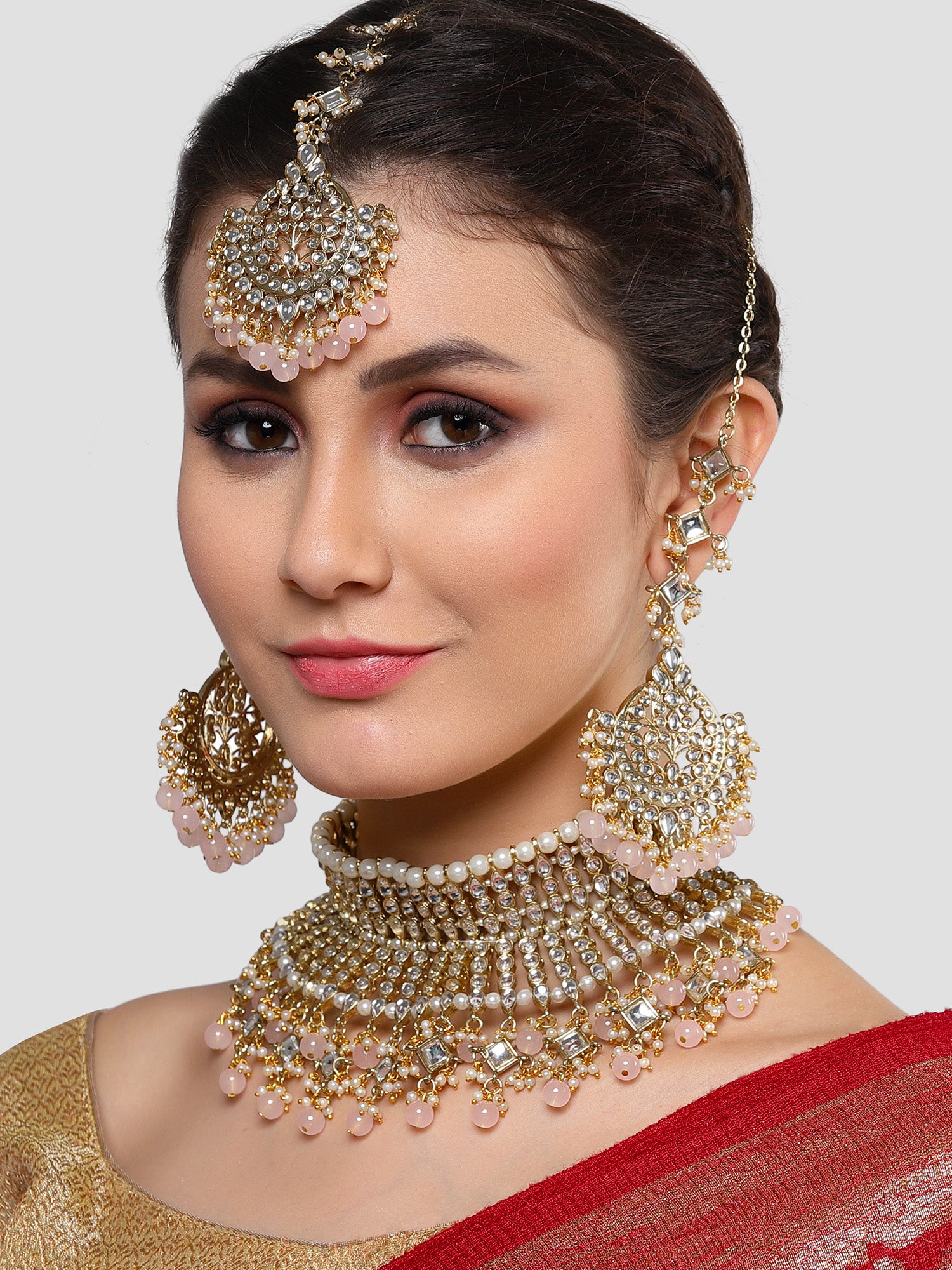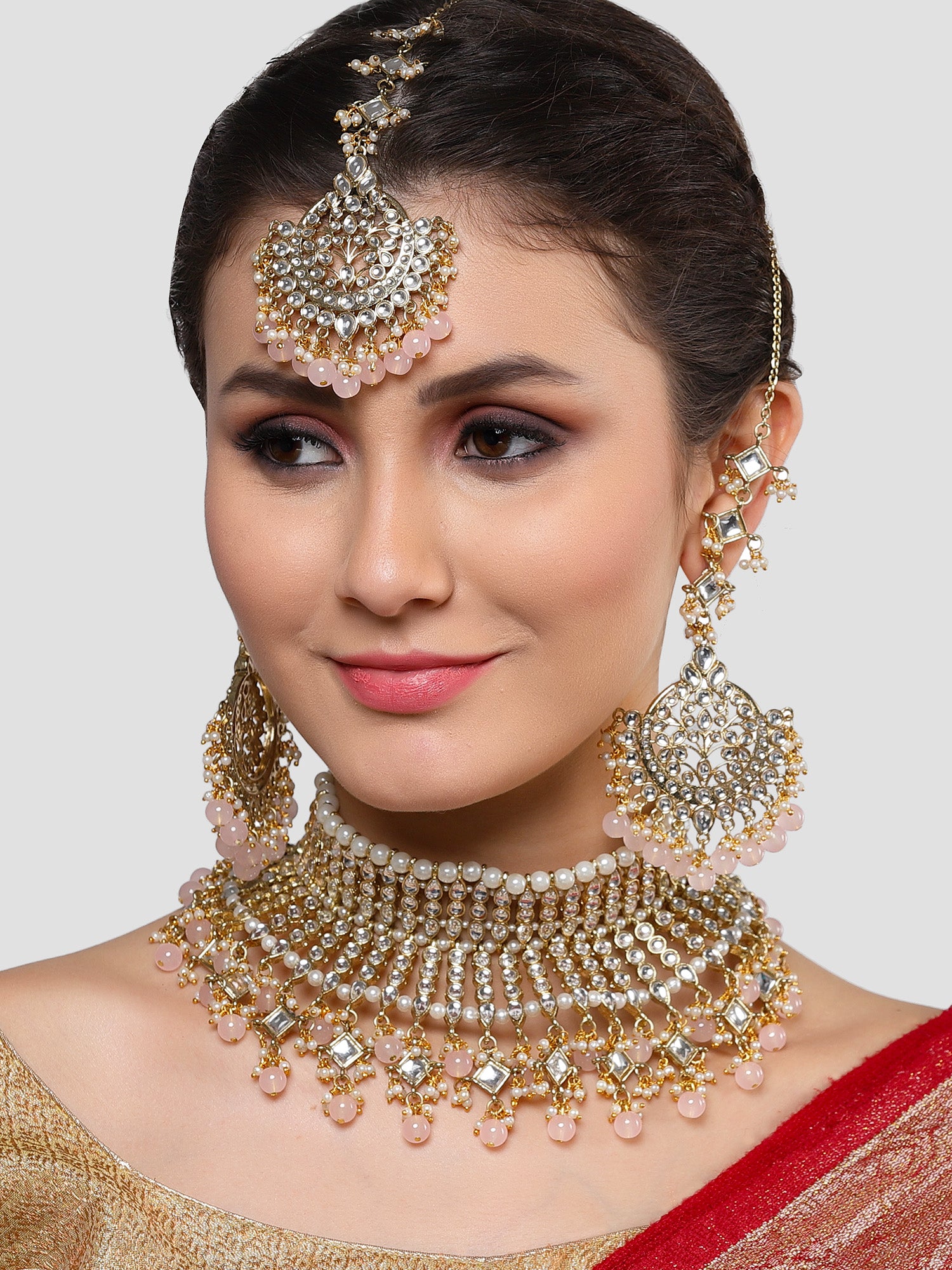 Karatcart Gold Plated Pink Beads Kundan Bridal Choker Necklace Set for Women