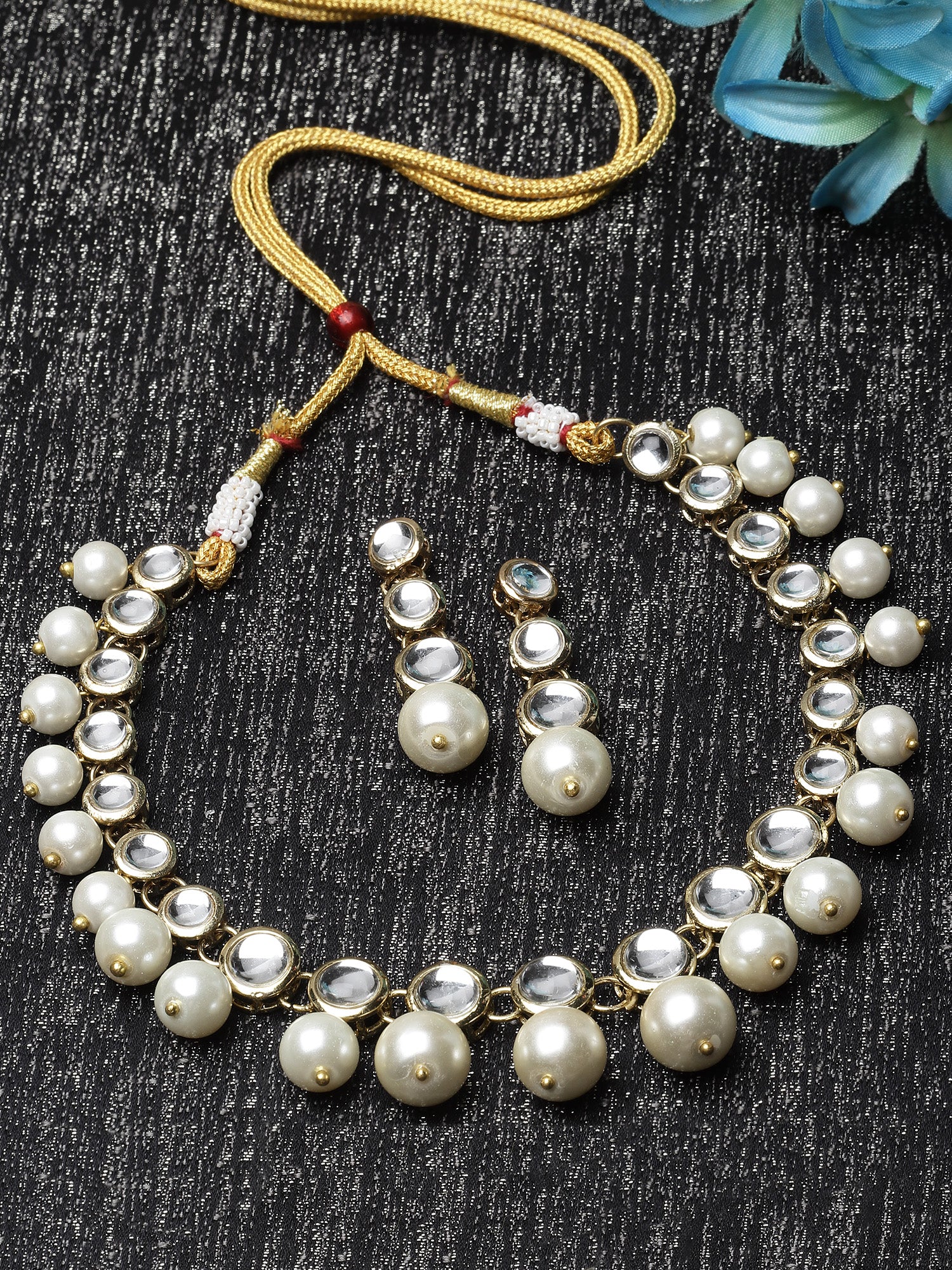 Karatcart Gold Plated Pearl and Kundan Jewellery Set for Women