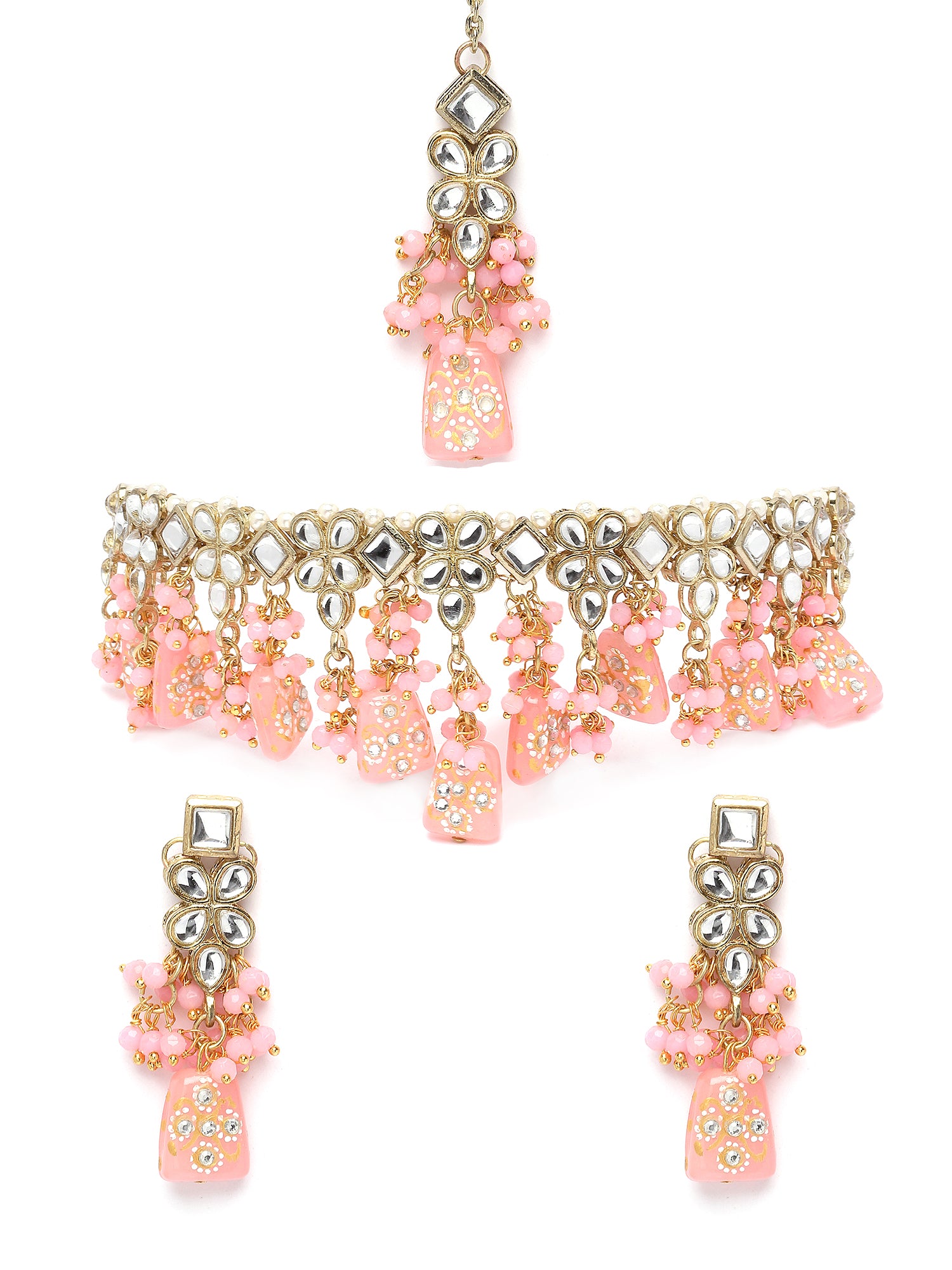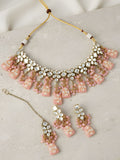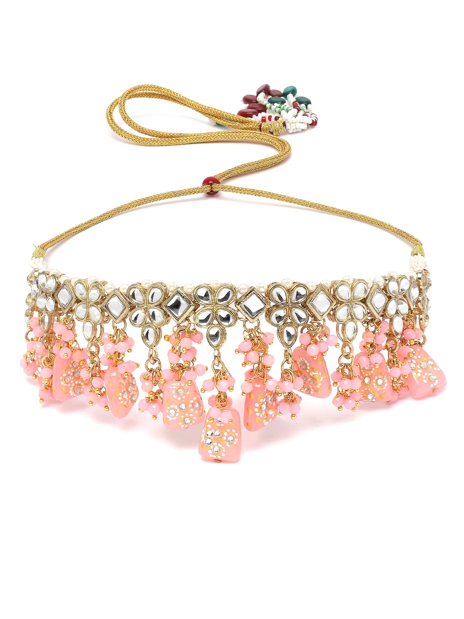 Karatcart Pink Tumble Gold Plated Kundan Choker Necklace Set for Women
