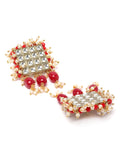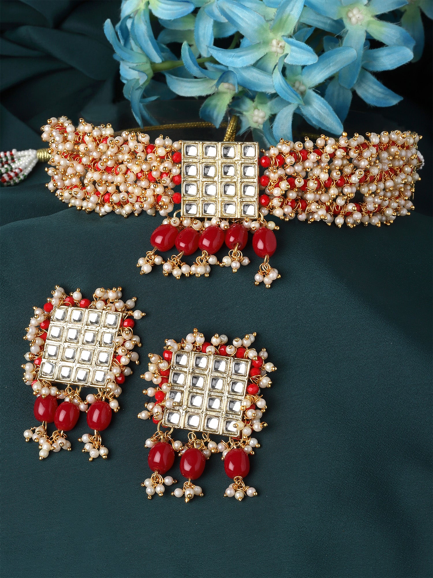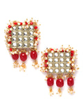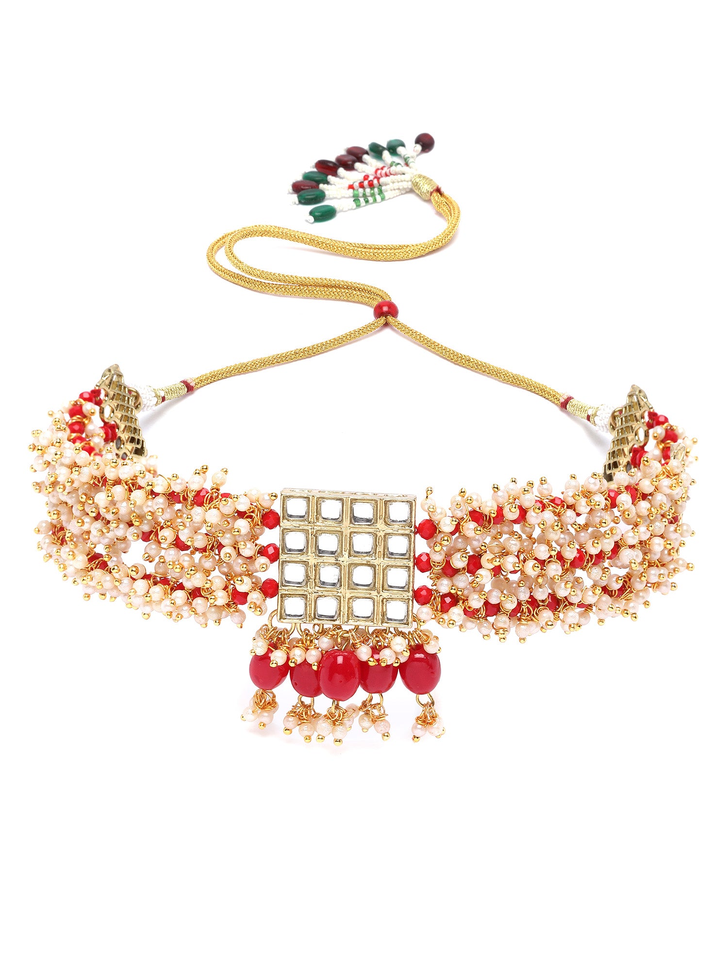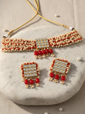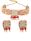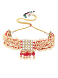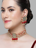 Karatcart Red Crystal and Pearl Beaded Kundan Choker Necklace Set for Women