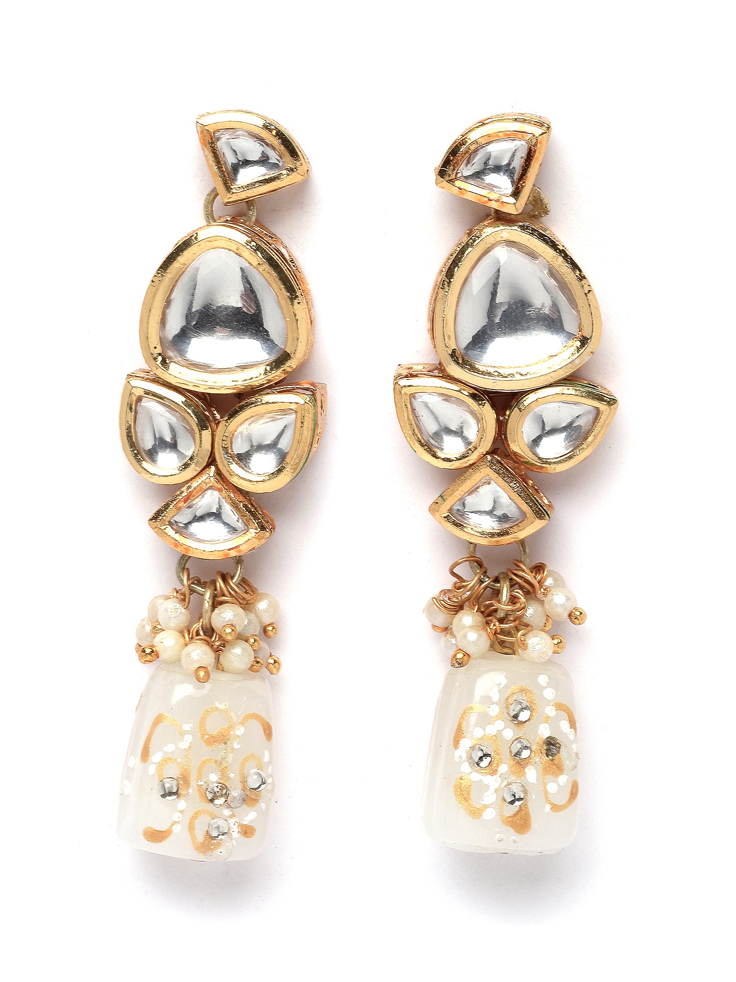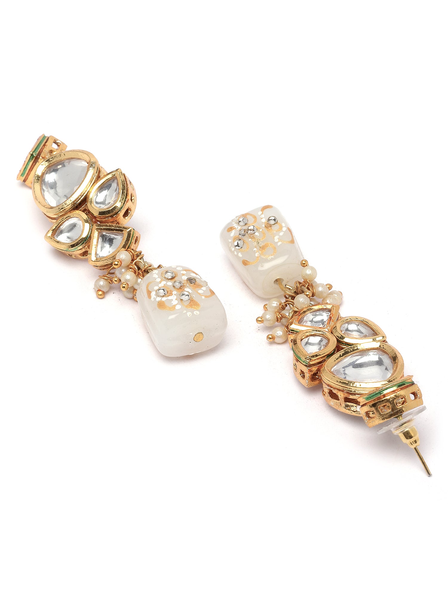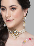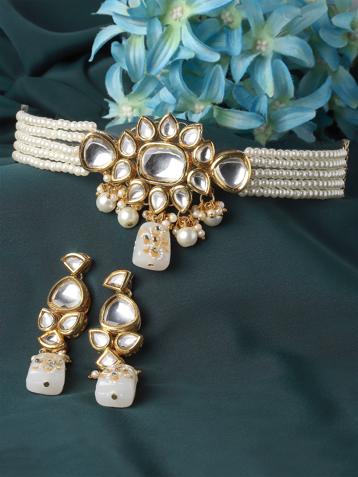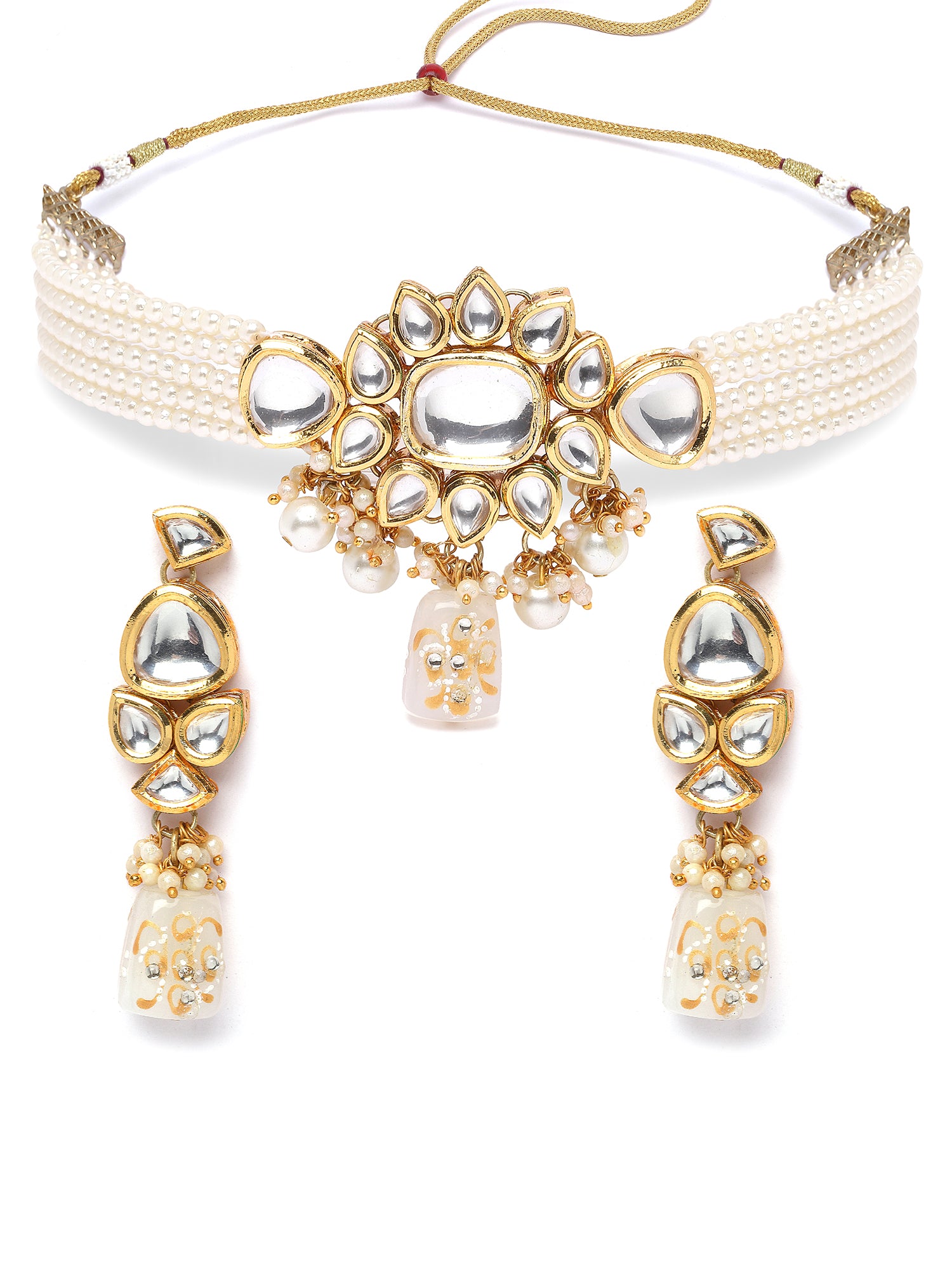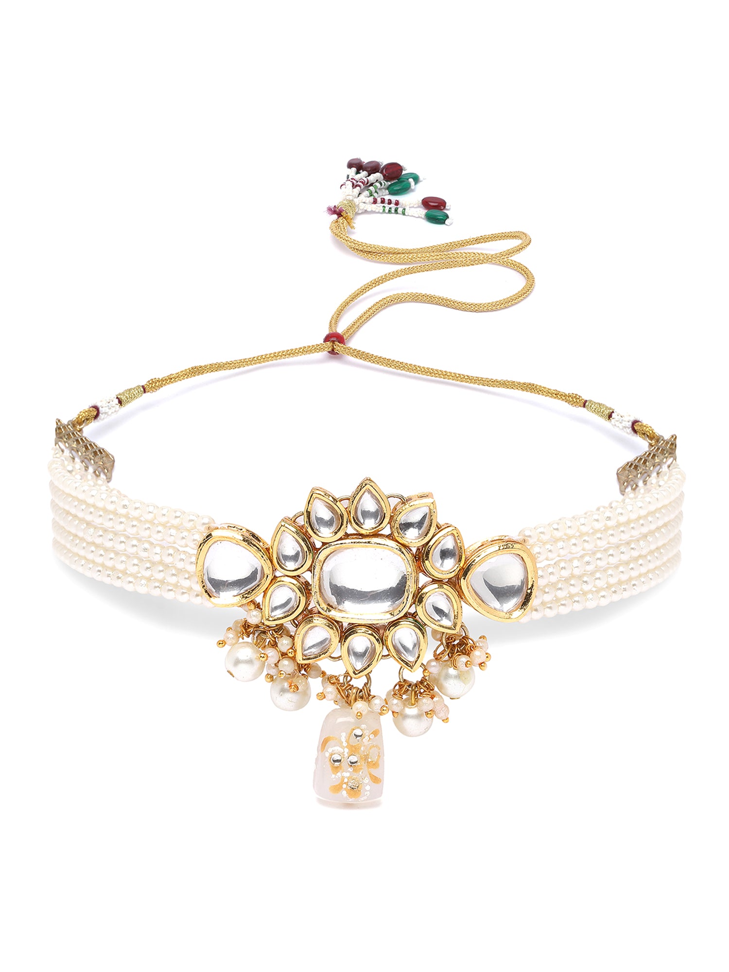 Karatcart White Tumble and Pearl Studded Polki Kundan Choker Necklace Set for Women