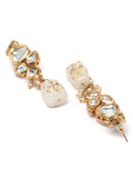 A dazzling blend of classic sophistication and contemporary elegance. This exquisite choker features pristine white tumble stones and lustrous pearls, artfully combined with intricate Polki Kundan detailing, all set on a luxurious gold-plated base. The elegant contrast between the white stones and pearls creates a timeless and graceful design.