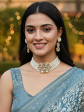 Karatcart Gold Plated Pearl Beaded Polki Kundan Choker Necklace Set for Women