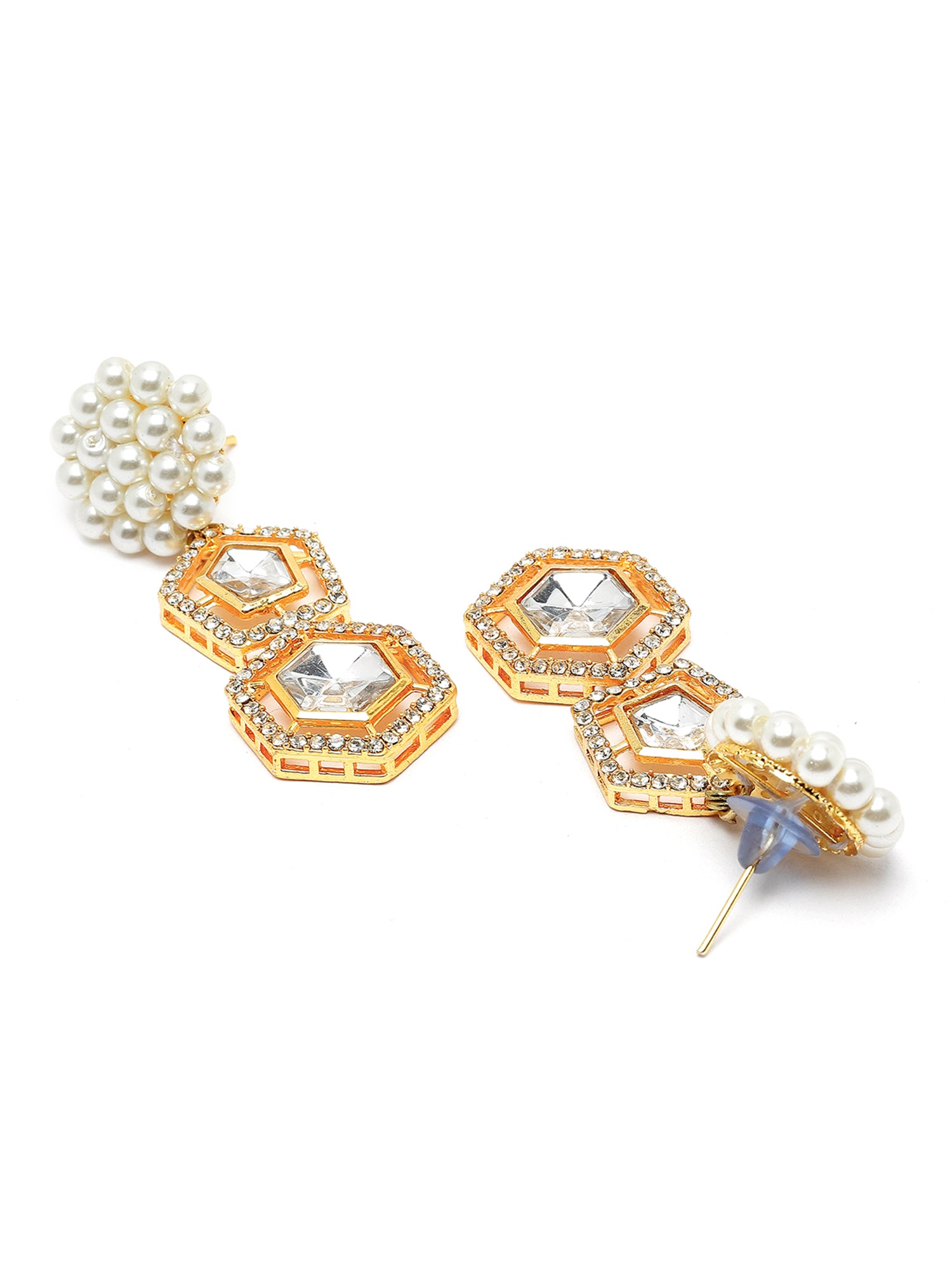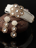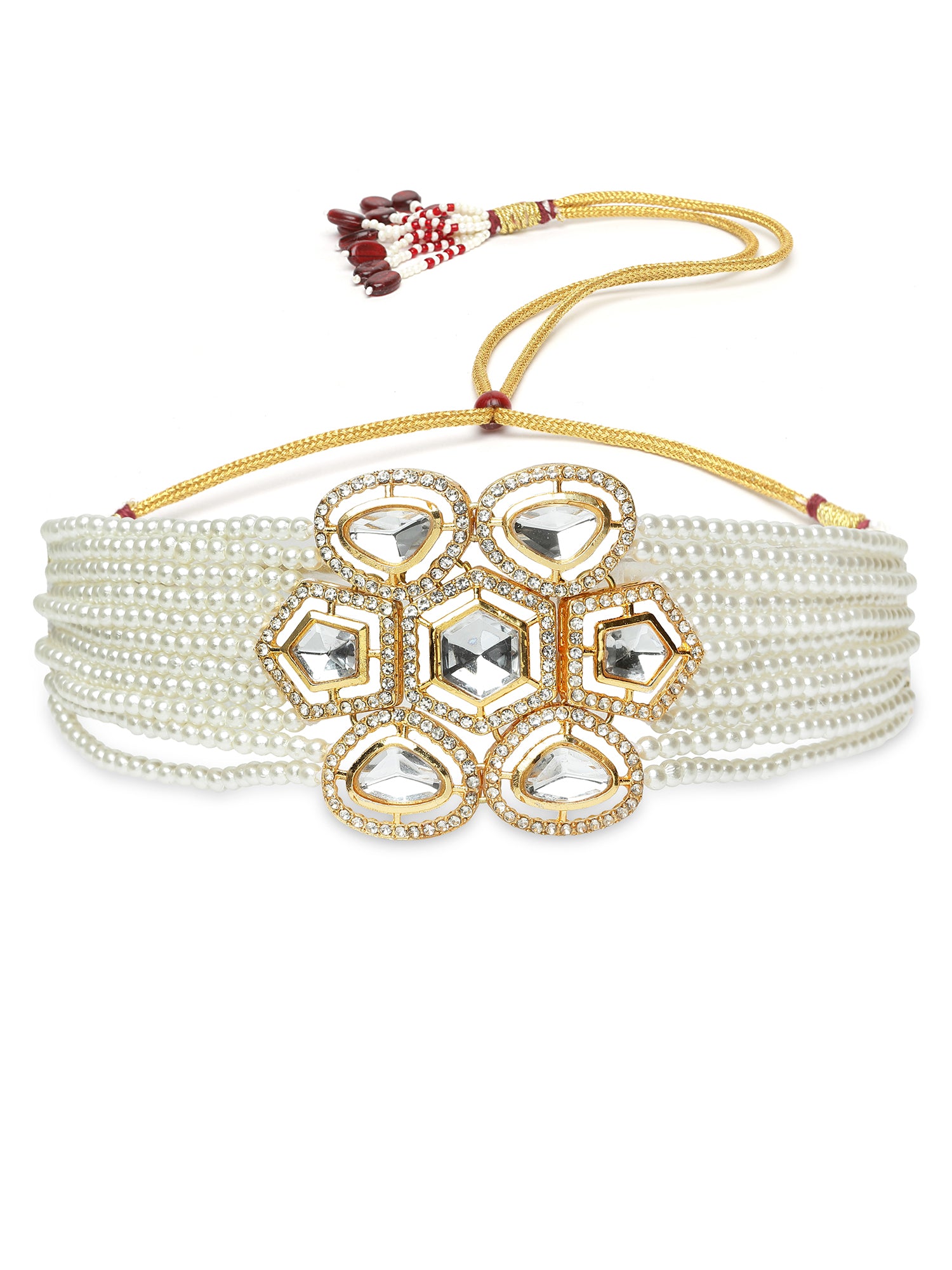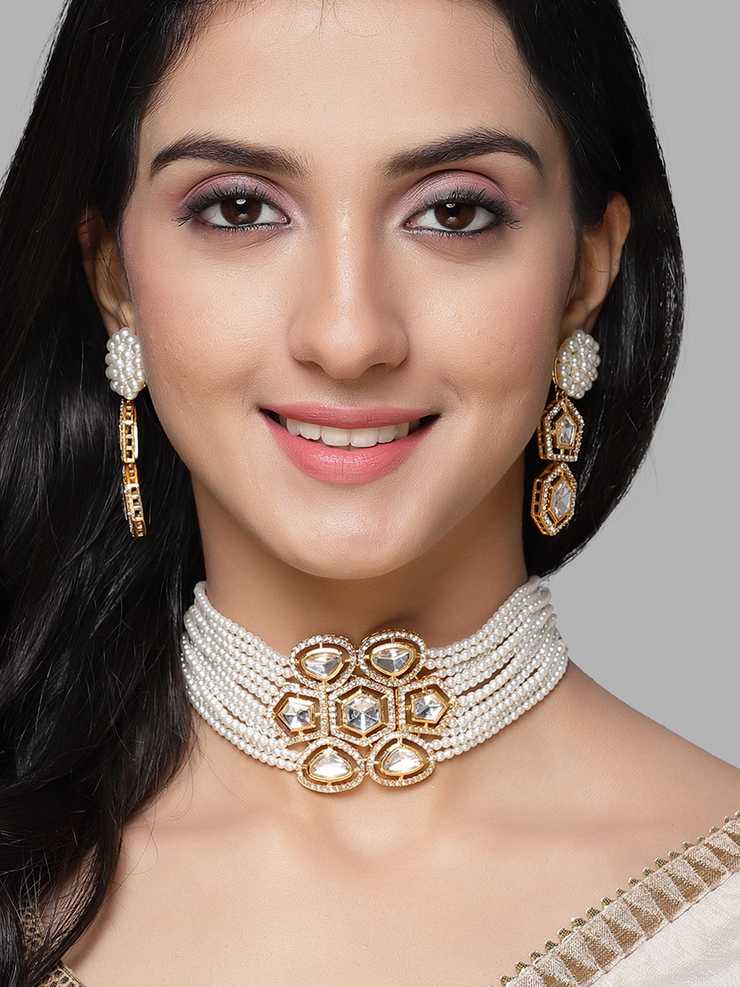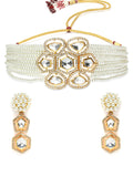 Karatcart Gold Plated Pearl Beaded Polki Kundan Choker Necklace Set for Women