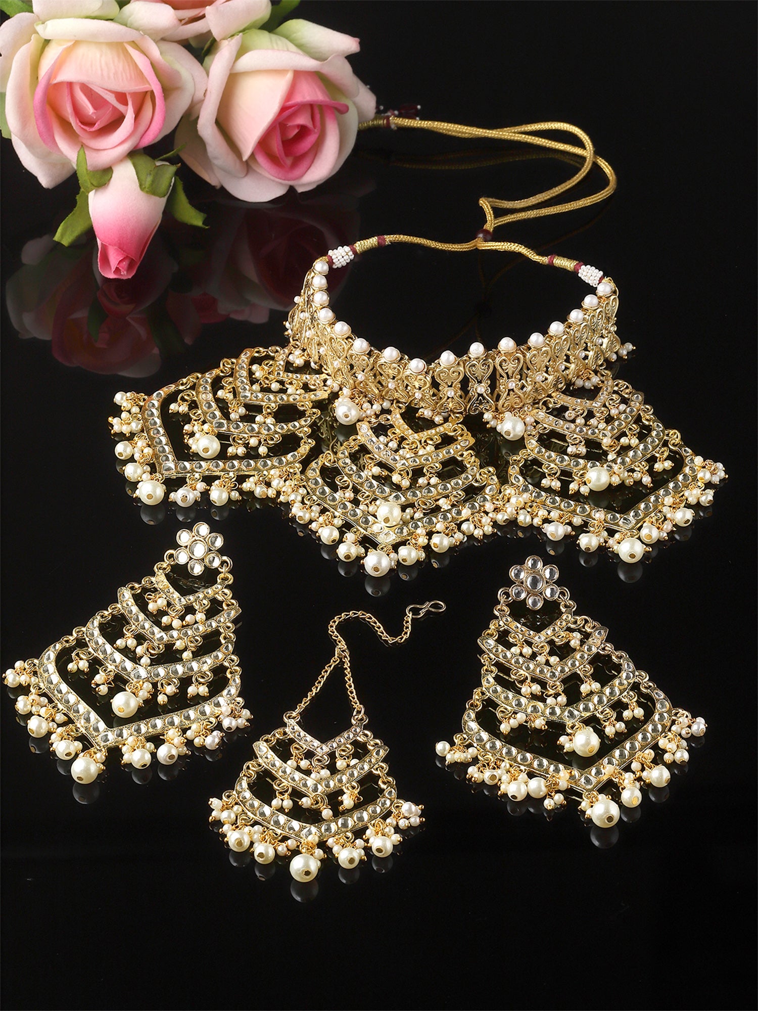 - What’s Included: 1 Necklace, 1 Pair of Earrings and 1 Maangtikka