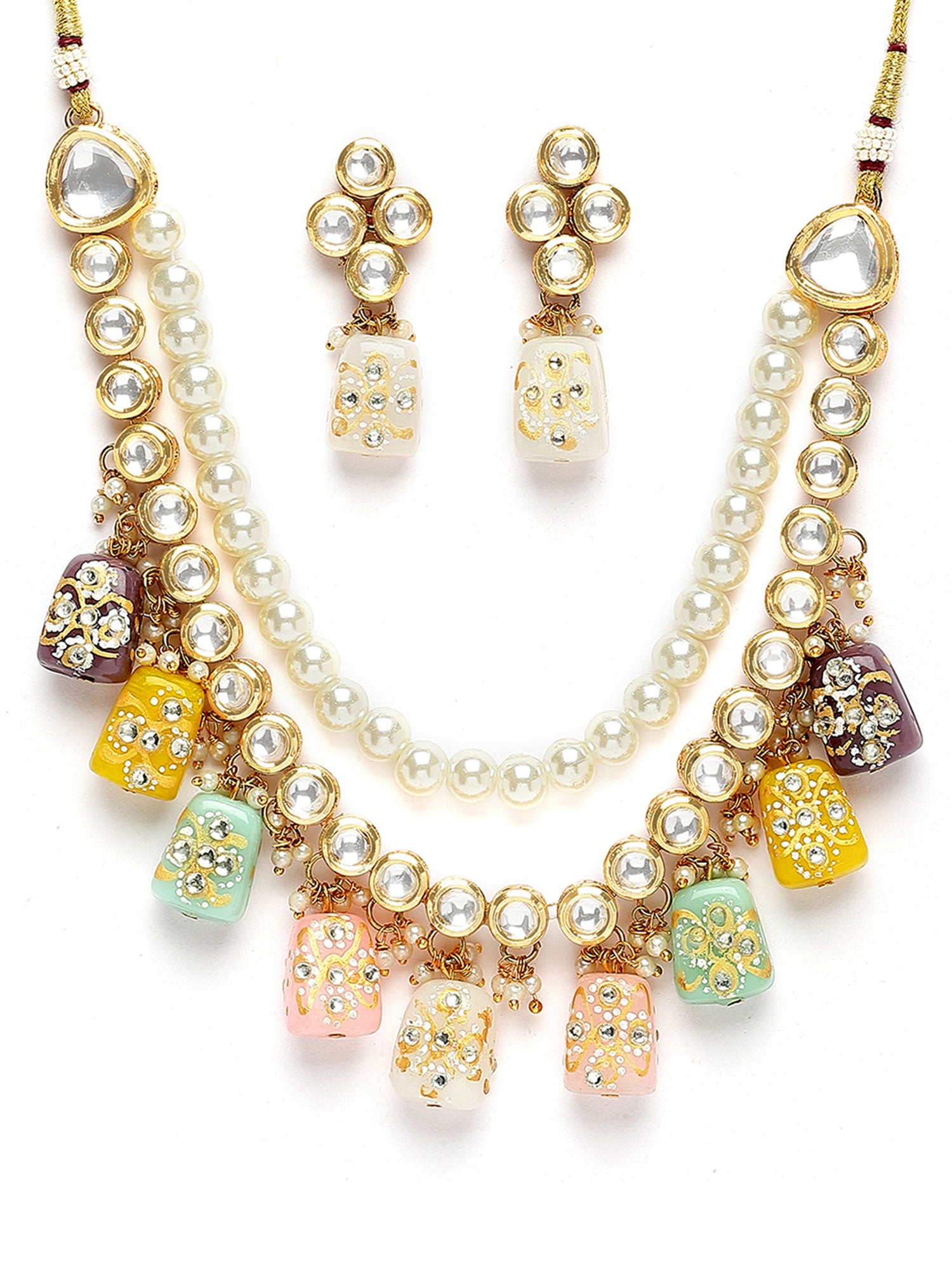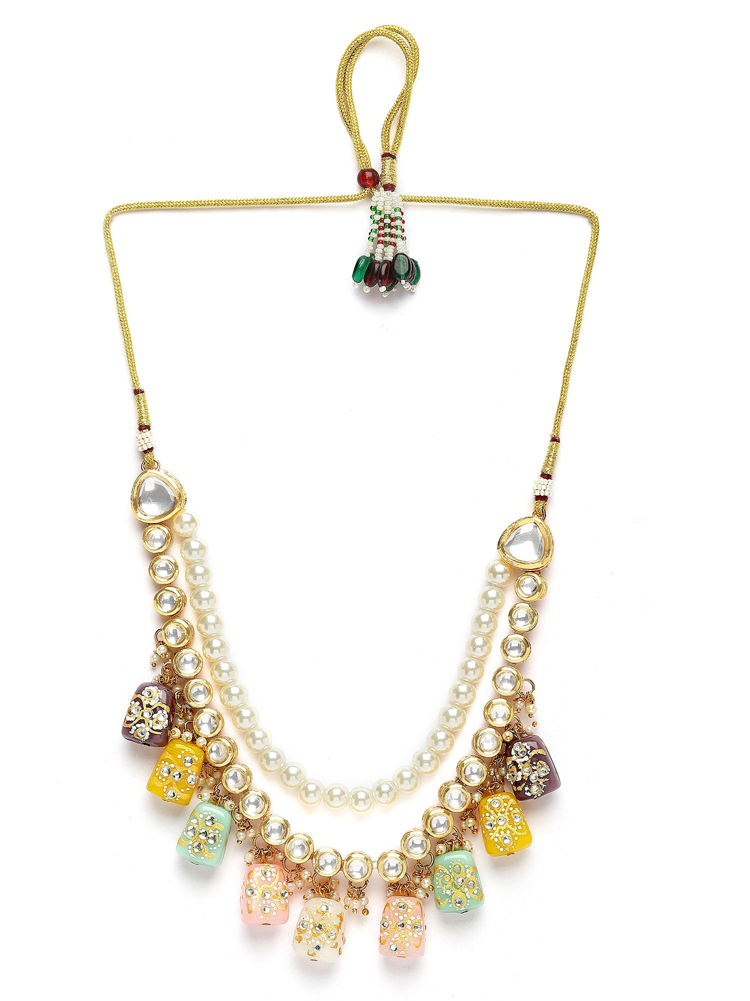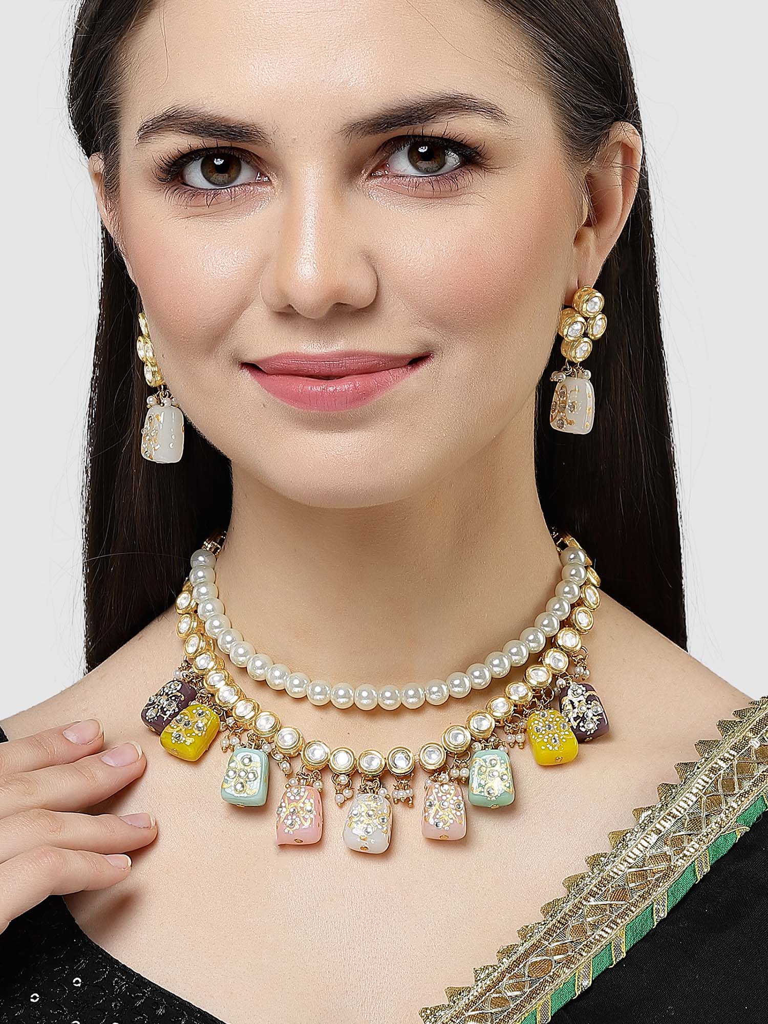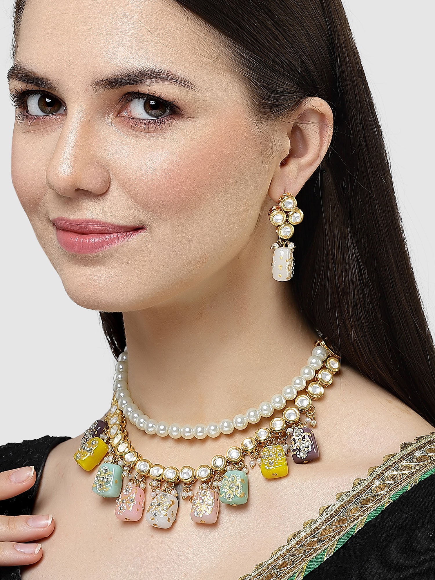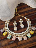 Karatcart Navratna Designer Tumble Pearl and Polki Kundan Necklace Set for Women