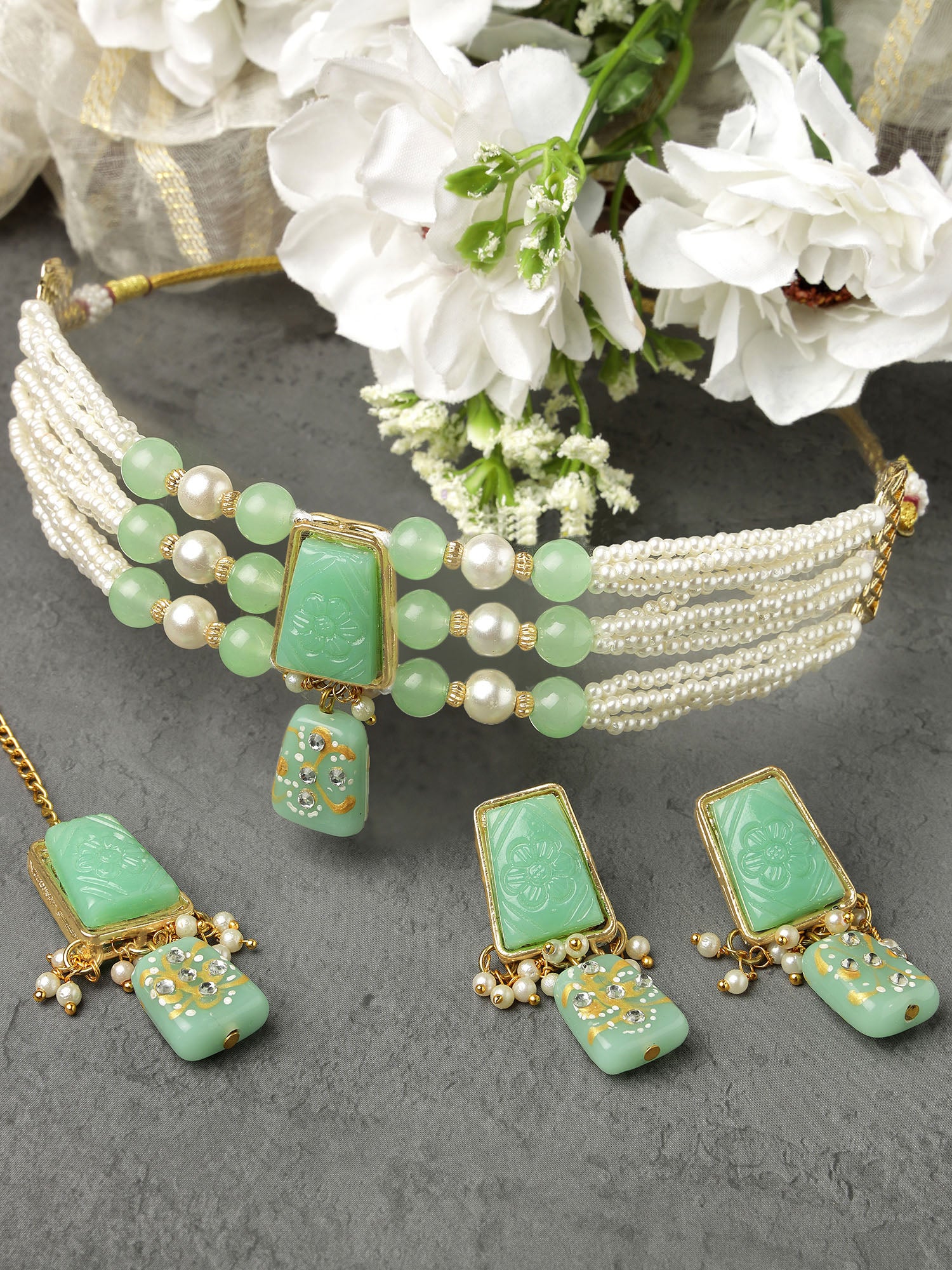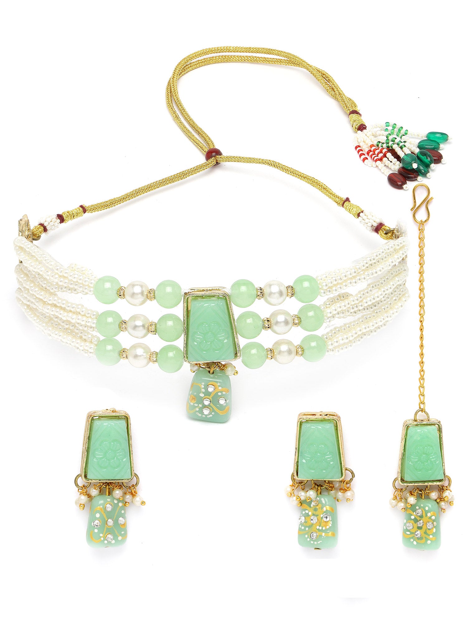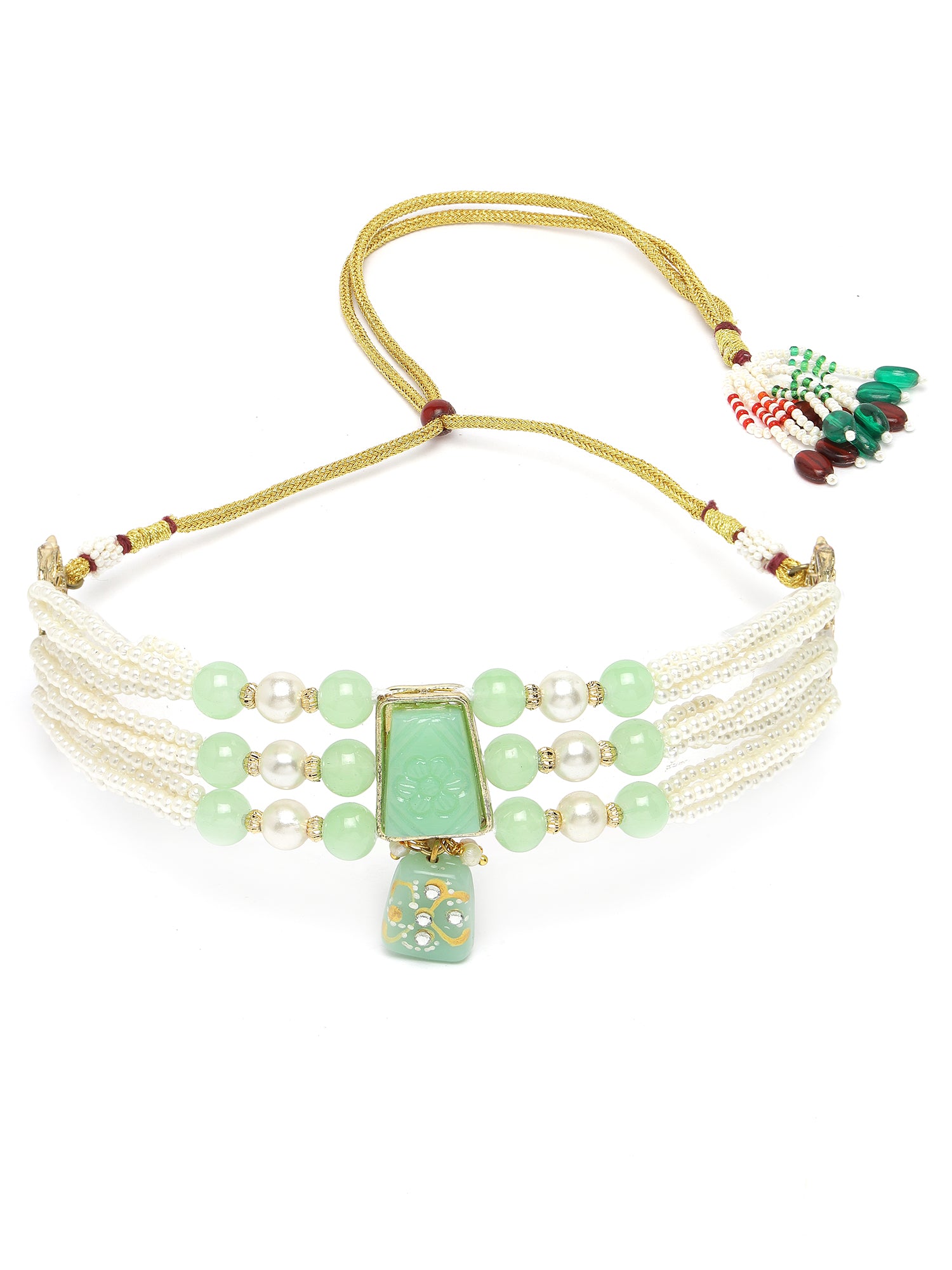 KARATCART Gold Plated Kundan Choker Light Green Jewellery Set for Women