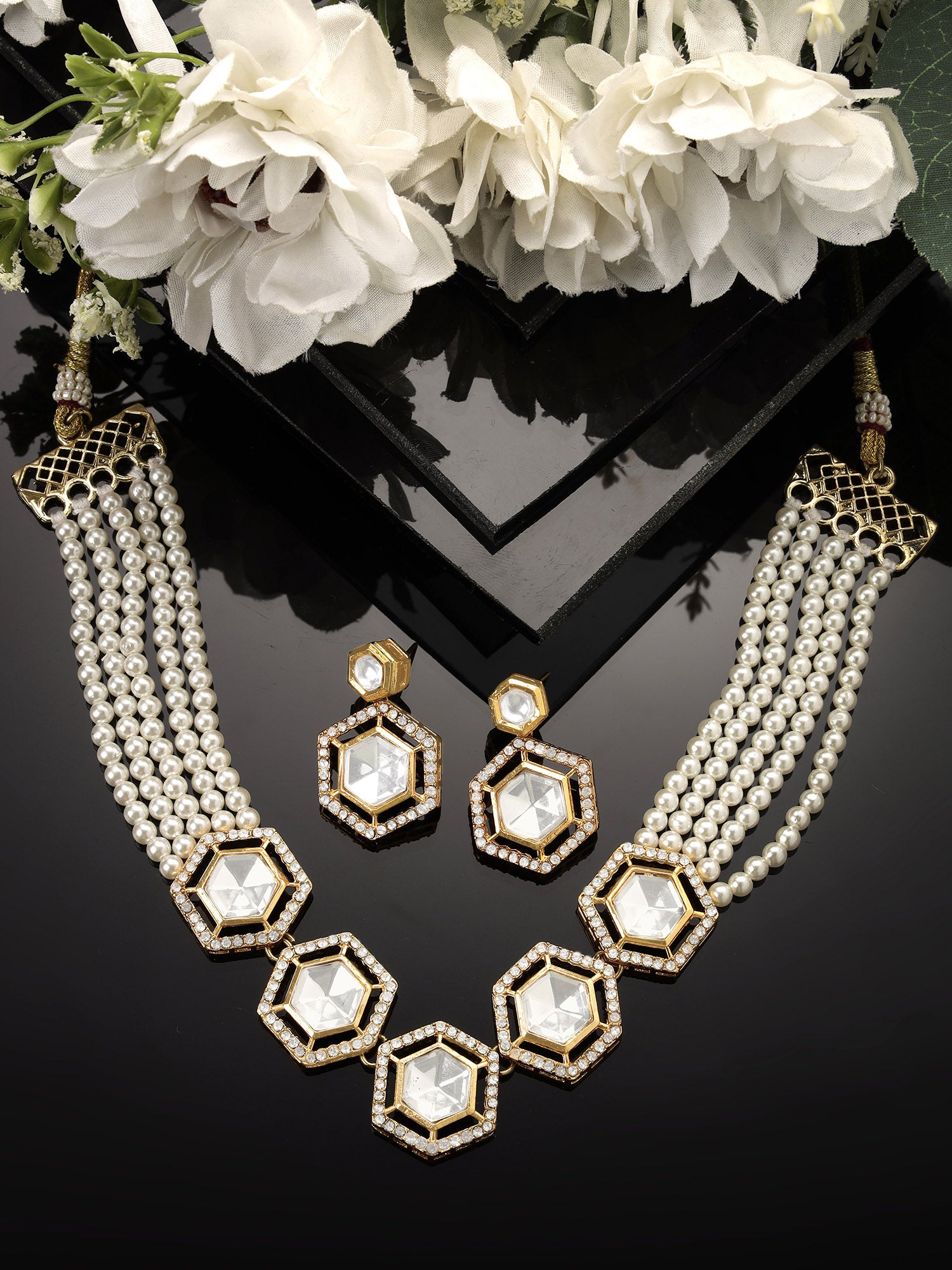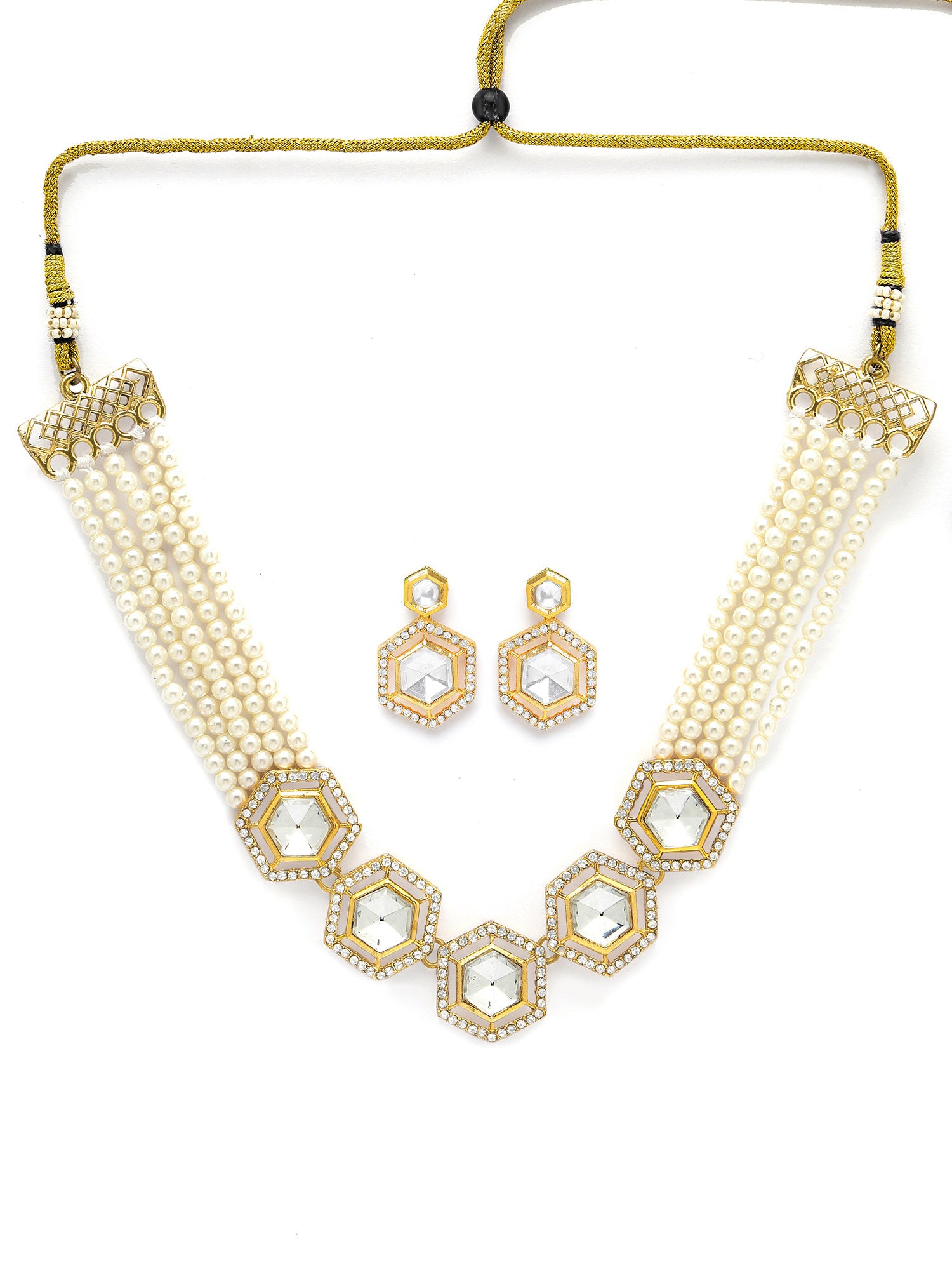 KARATCART Gold Plated Polki Classic Gold Jewellery Set for Women