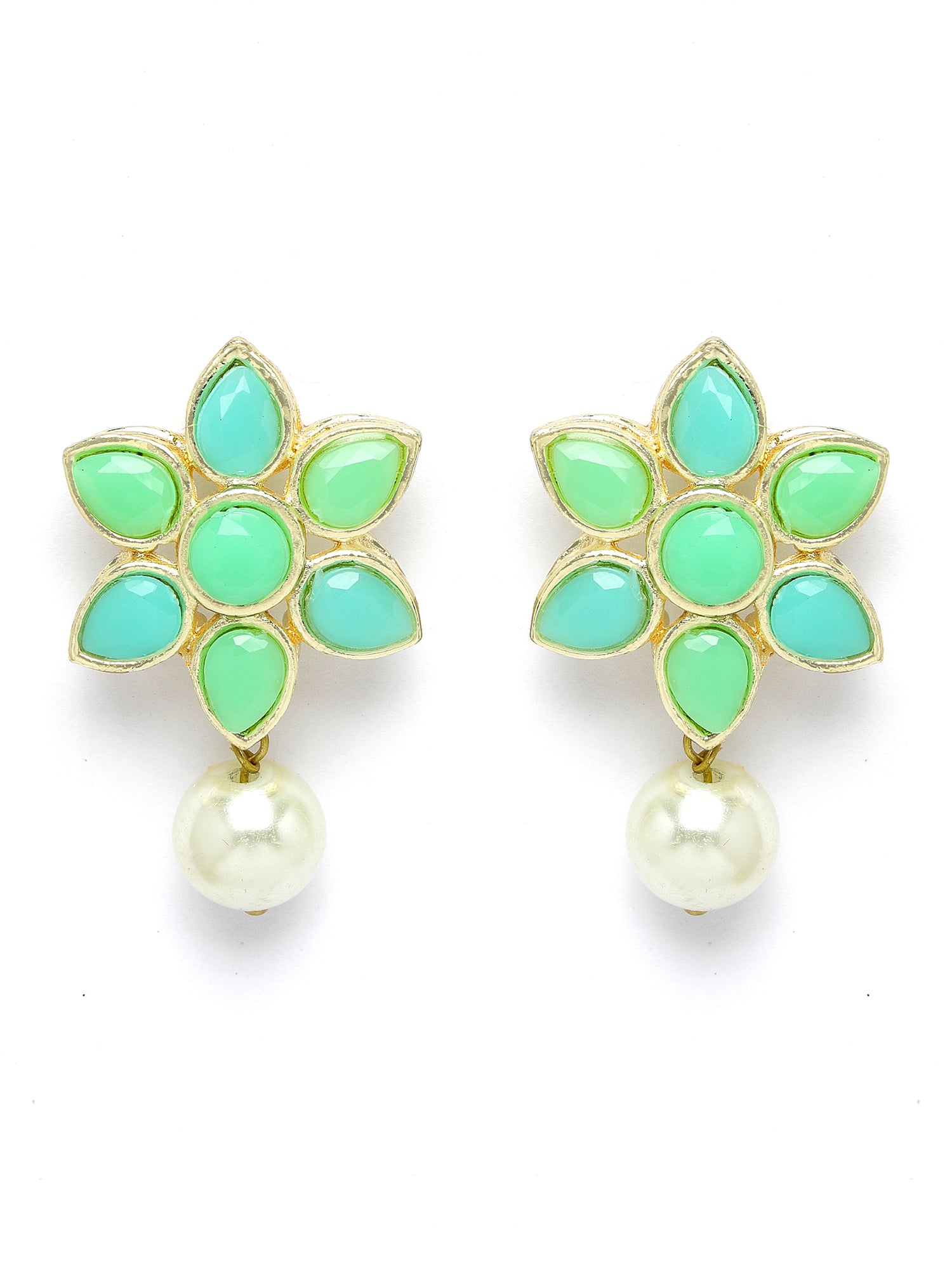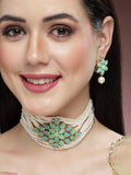 Karatcart Gold Plated Pearl Beaded Light Blue and Light Green Kundan Stone Choker Necklace Set