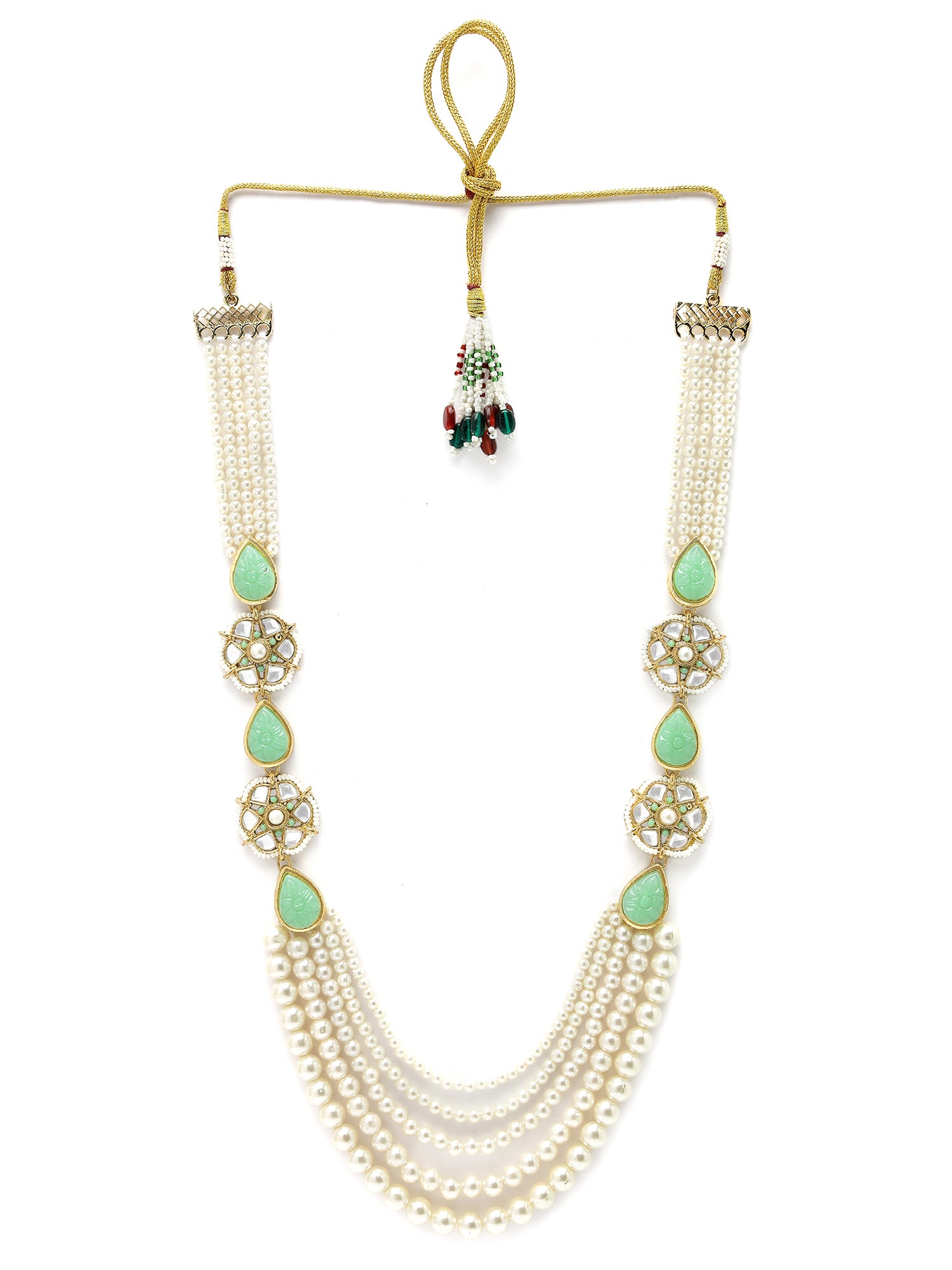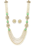 Karatcart Pearl Beaded Light Green Carved Stone Kundan Rani Haar Necklace Set for Women