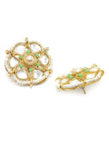 - This is a Lime Green Jewellery Set by Brand Karatcart which has Kundan stones.This is Gold Plated. We at KARATCART understand your desire to look the best on any day & we thrive in making any day an occasion. Every individual at Karatcart carries a passion for jewellery and it reflects in our beautiful designs as well as in our breathtaking craftsmanship. We create unique jewellery so you can make heads turn..