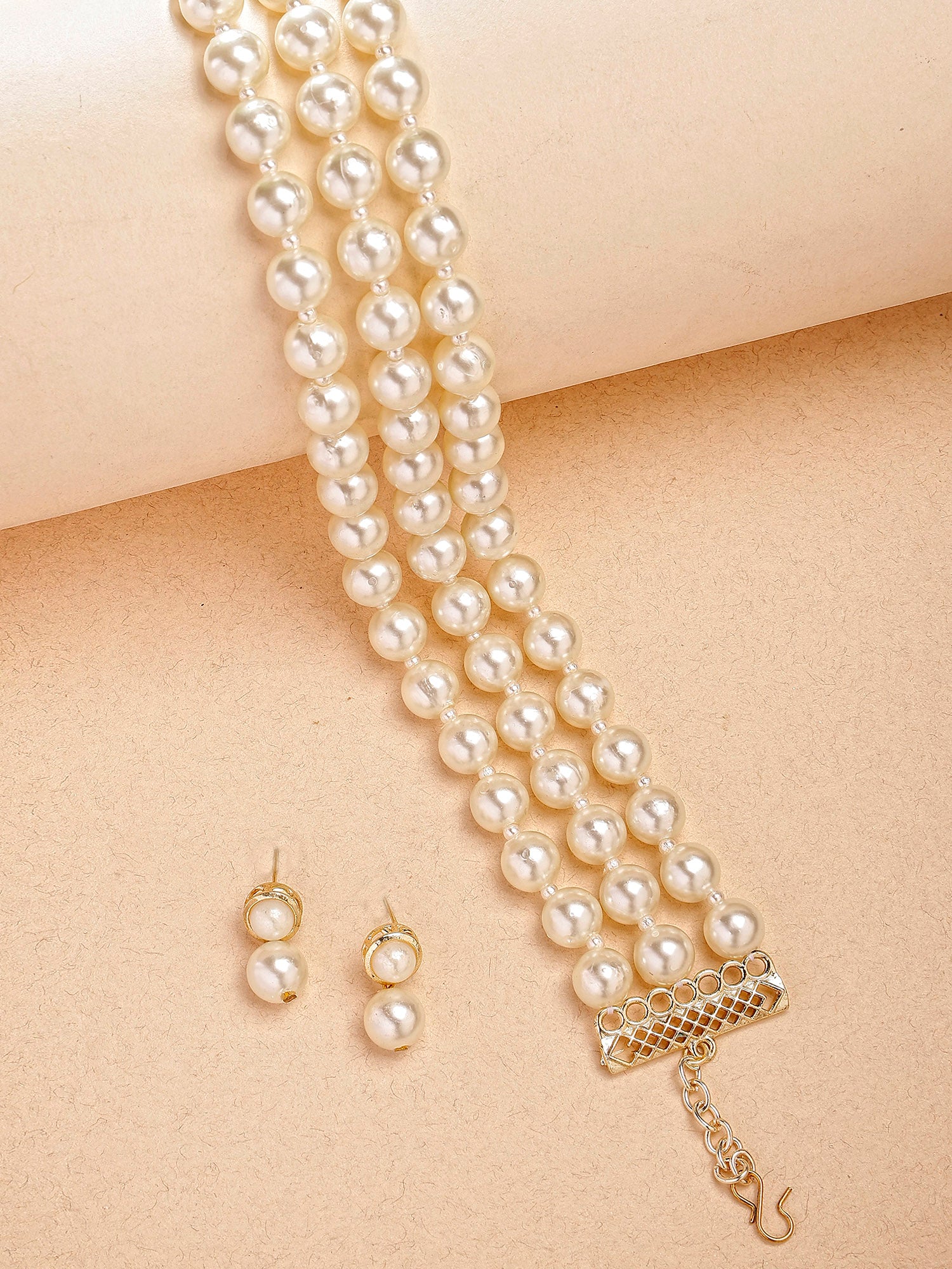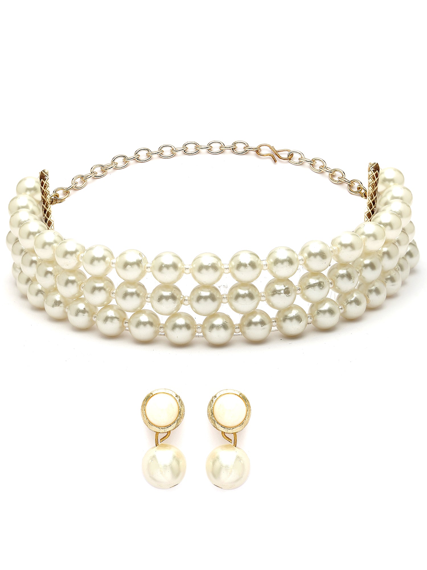 Karatcart Gold Plated Multilayer Pearl Beaded Choker Necklace for Women